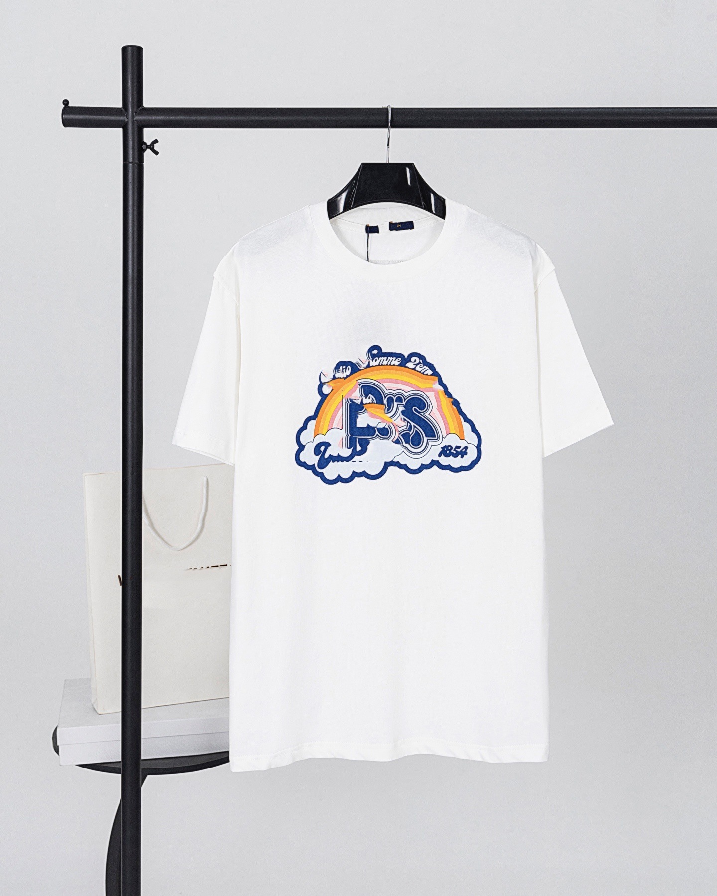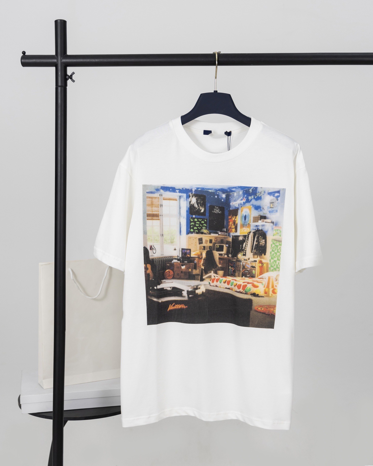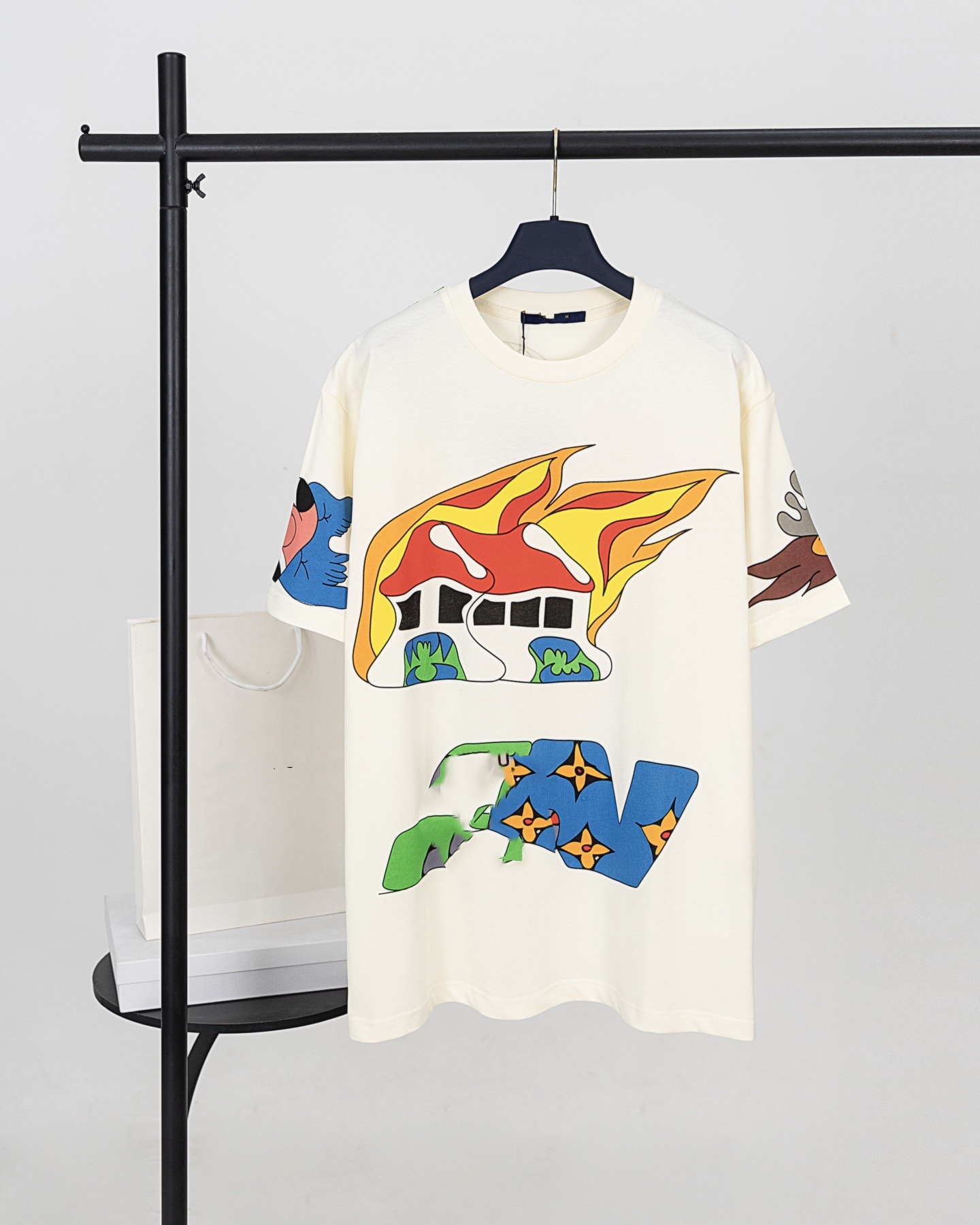 국경을 넘나드는 트렌디 브랜드 Lujia 25 봄 여름 캐주얼 프린트 패턴 심플 시리즈 남녀 하이버전 반팔 티셔츠스토어 가기