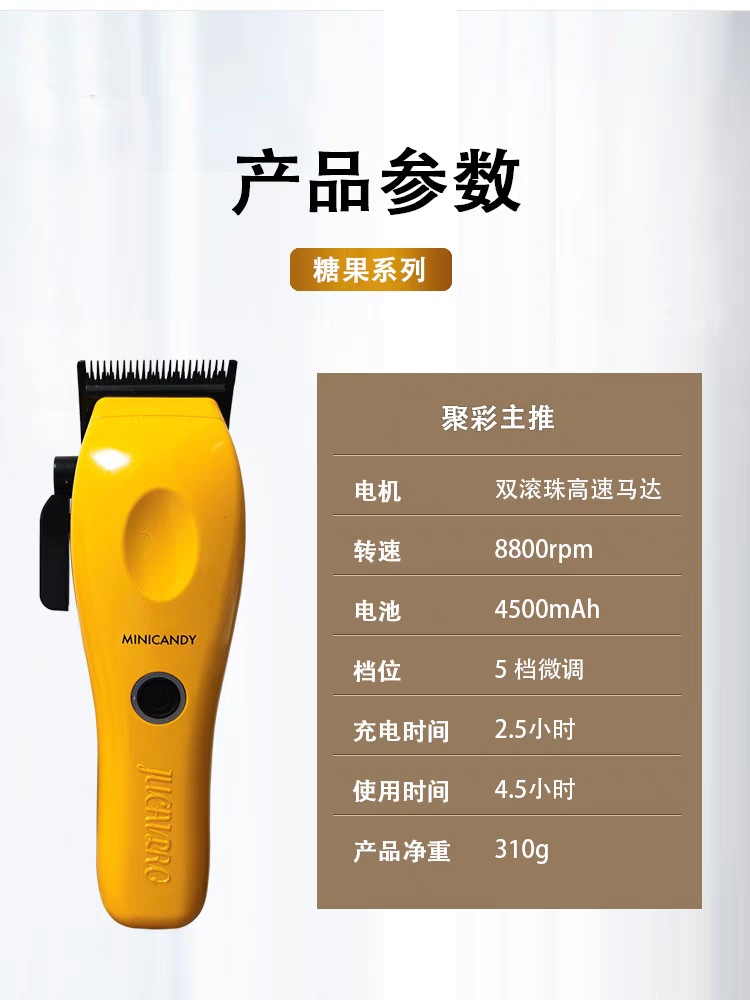 Jucai 전기 이발기 캔디 시리즈 이발기 노란색 지방 이발기 잔디 깎는 기계 헤어 살롱 오일 헤드 그라데이션 면도기스토어 가기