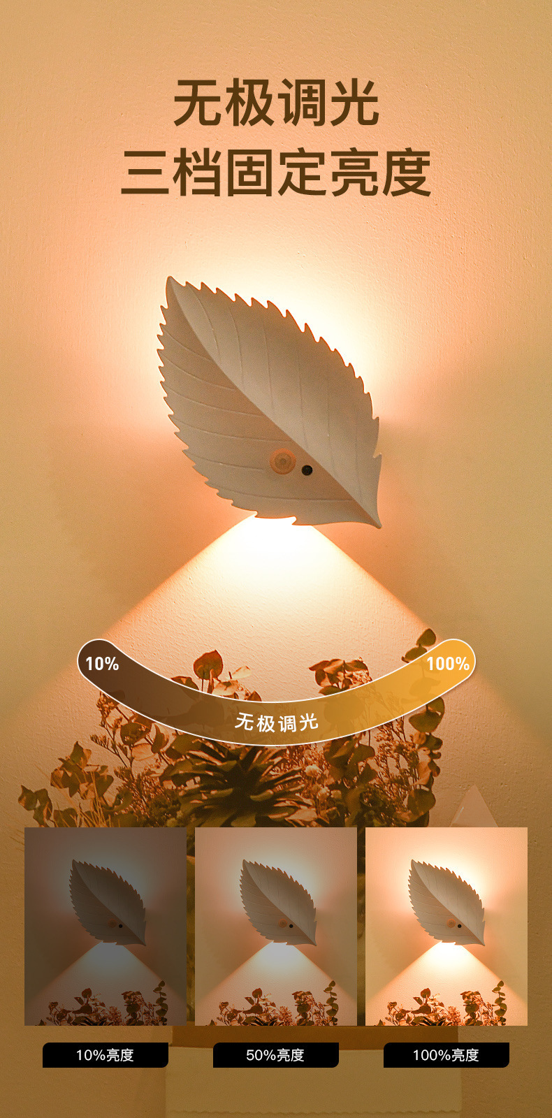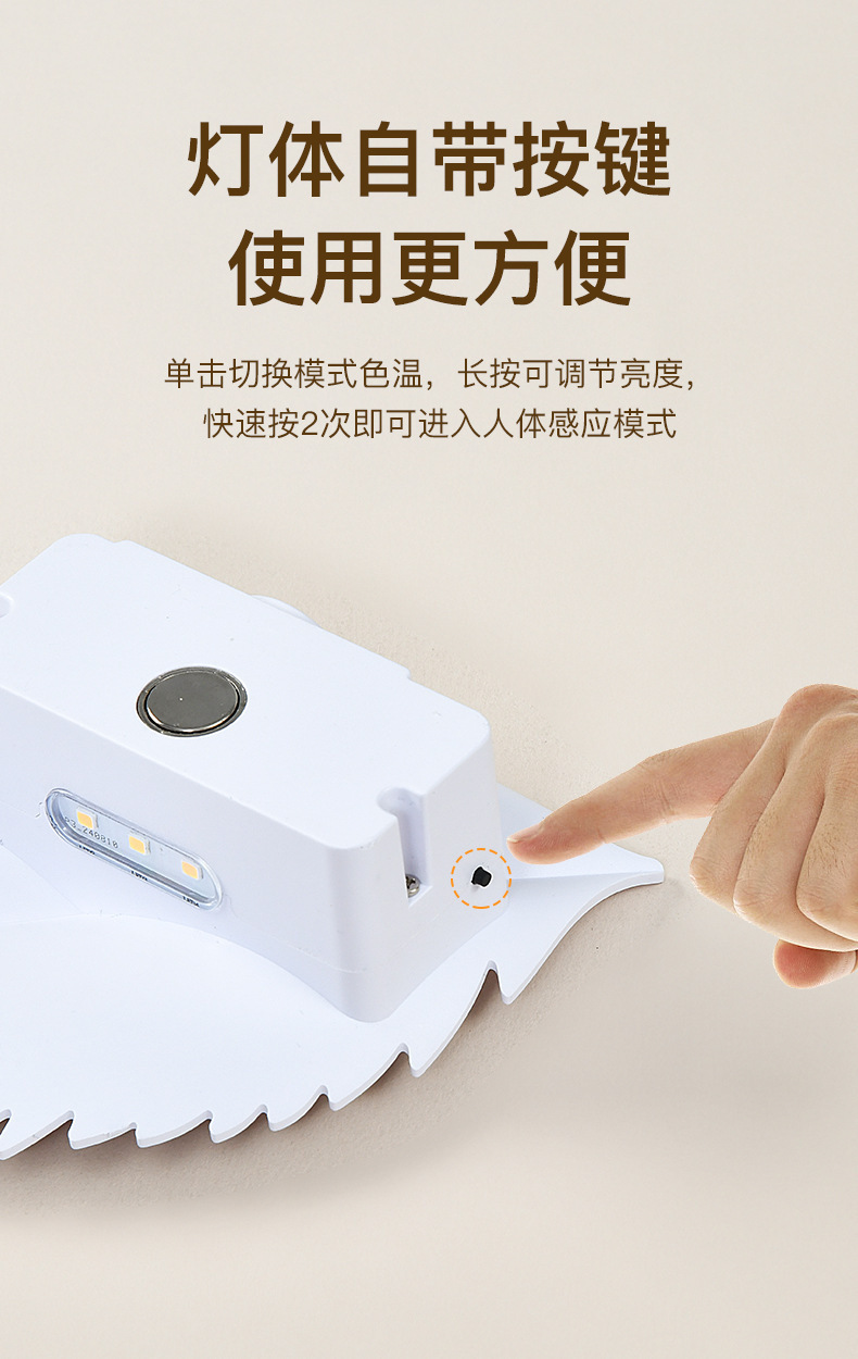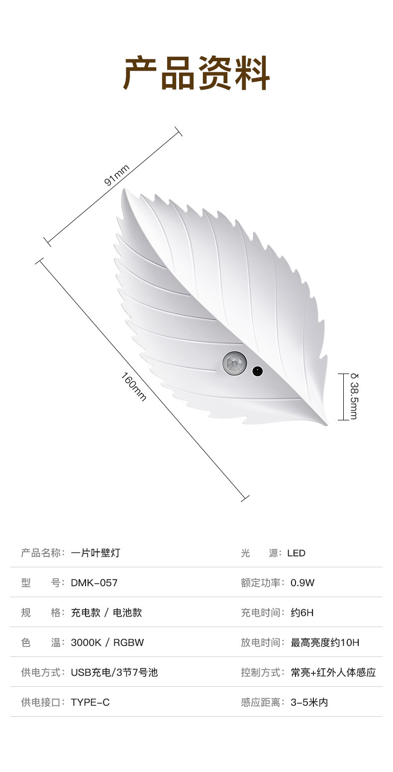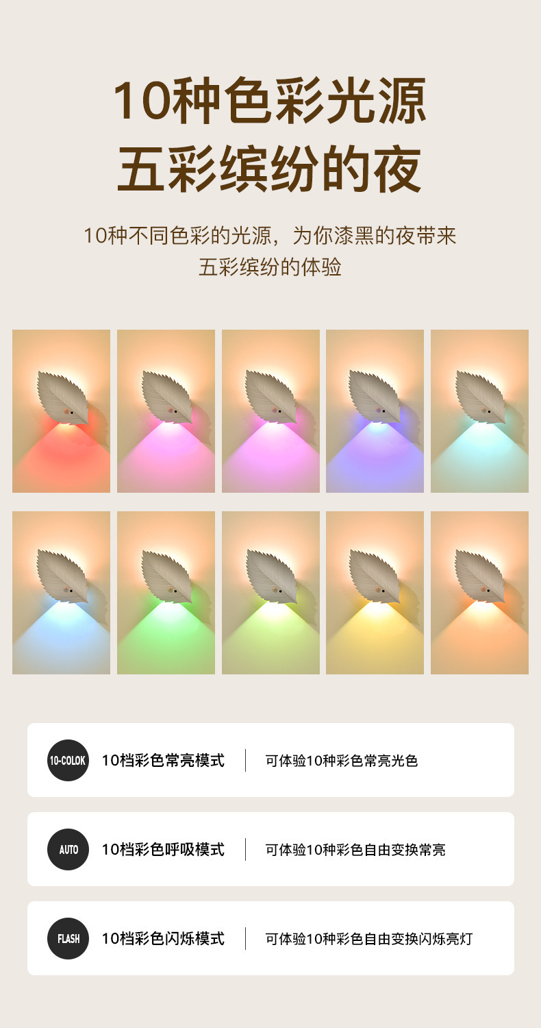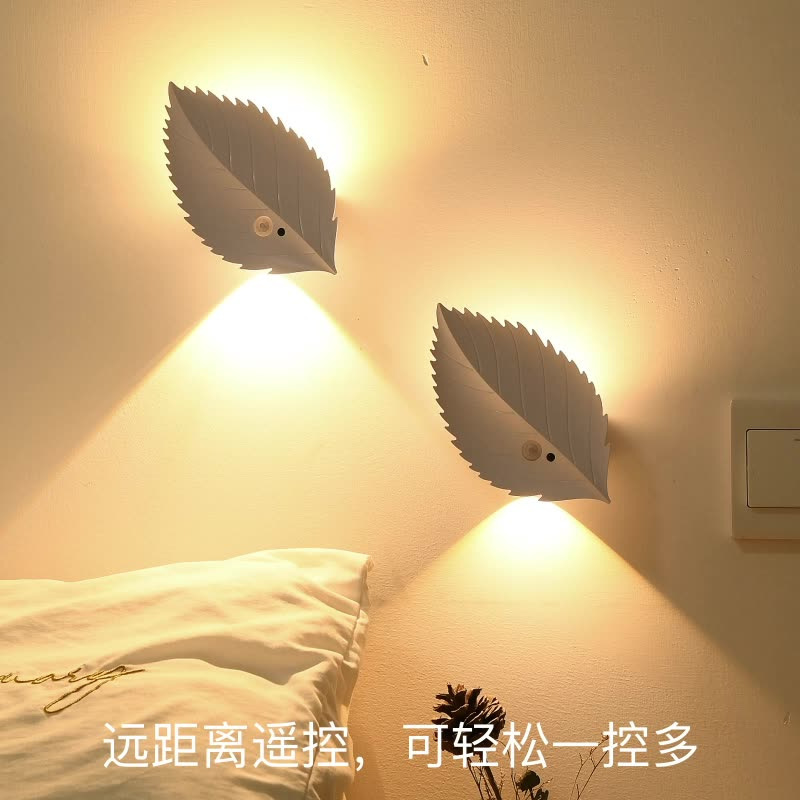새로운 인체 유도 야간 조명 잎 자기 충전식 벽 램프 원격 제어 LED 분위기 조명 야간 조명