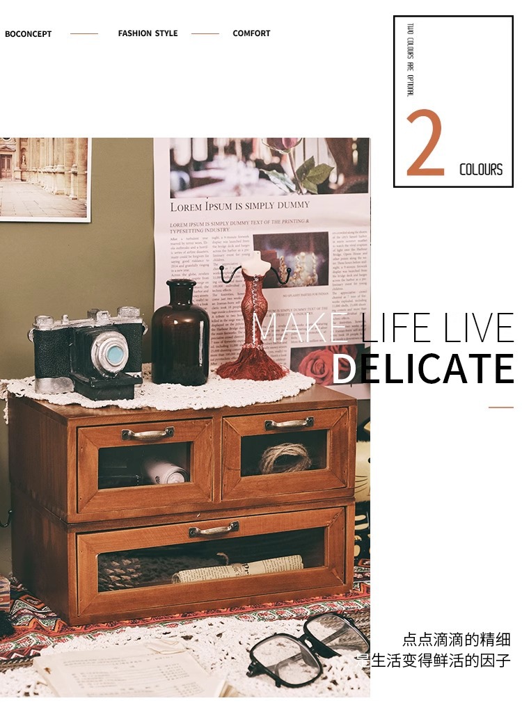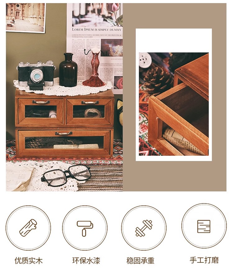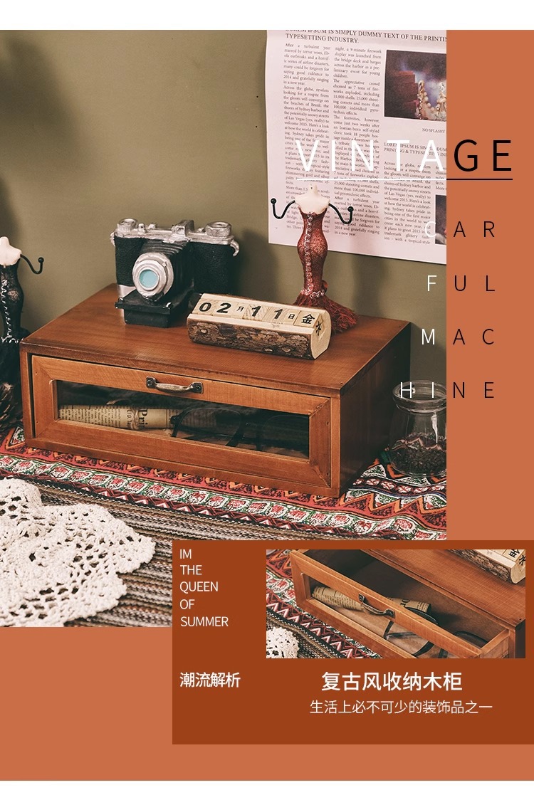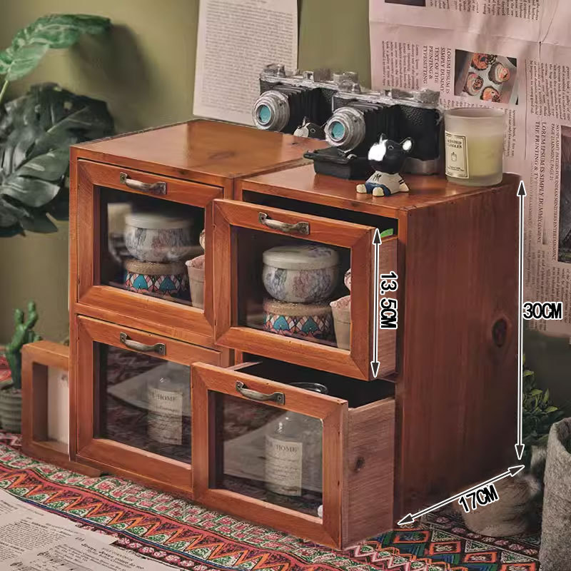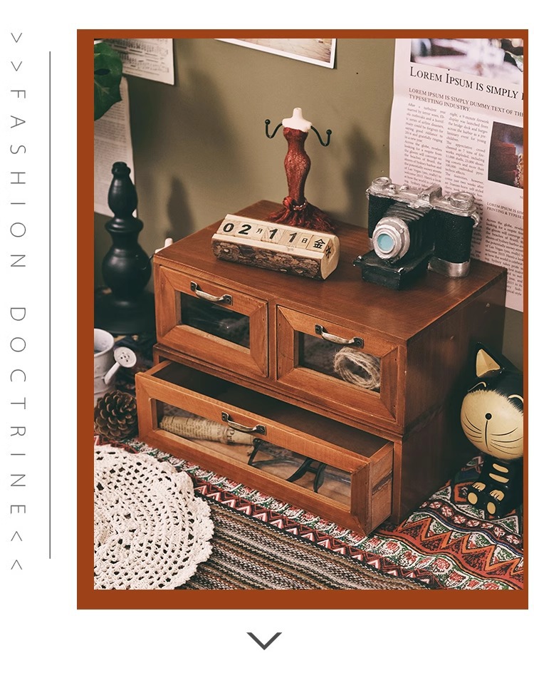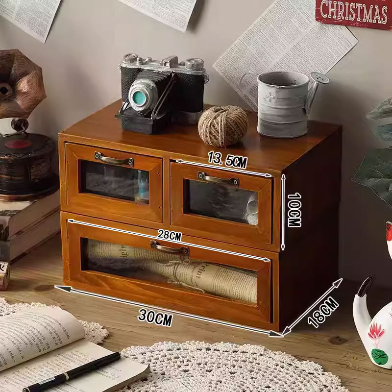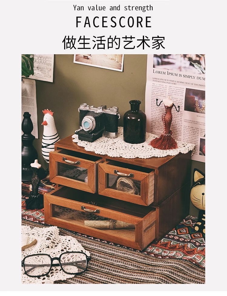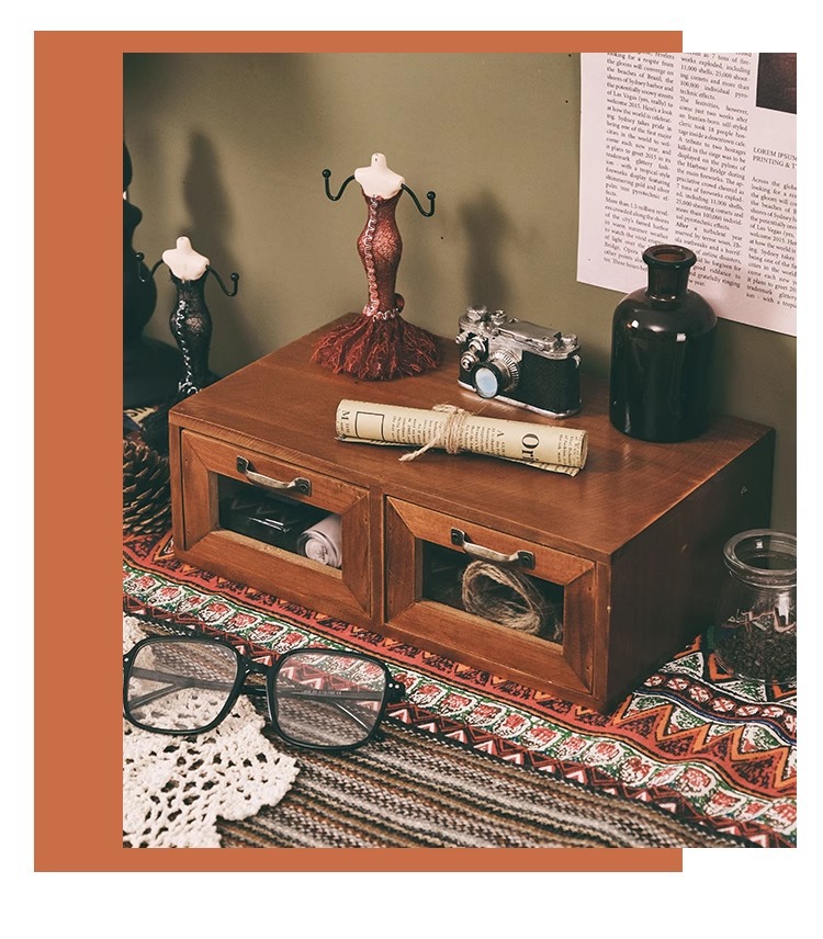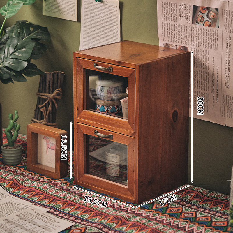 책상 복고풍 데스크탑 보관함 서랍형 화장품 캐비닛 나무 보관함 기숙사 테이블 테이프 보관함스토어 가기