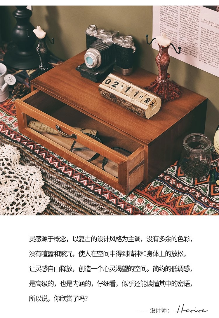 책상 복고풍 데스크탑 보관함 서랍형 화장품 캐비닛 나무 보관함 기숙사 테이블 테이프 보관함