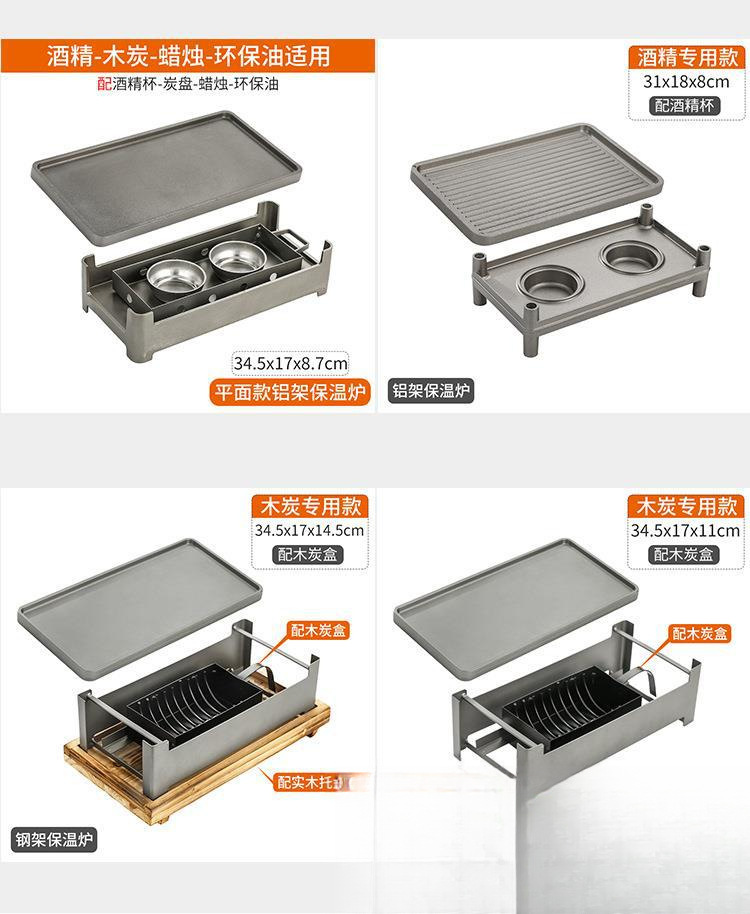 한국식 바베큐 그릴, 단열 그릴, 숯불 그릴, 가열식 스틱 그릴, 상업용 알코올 그릴, 붙지 않는 접시, 직사각형 바베큐 그릴