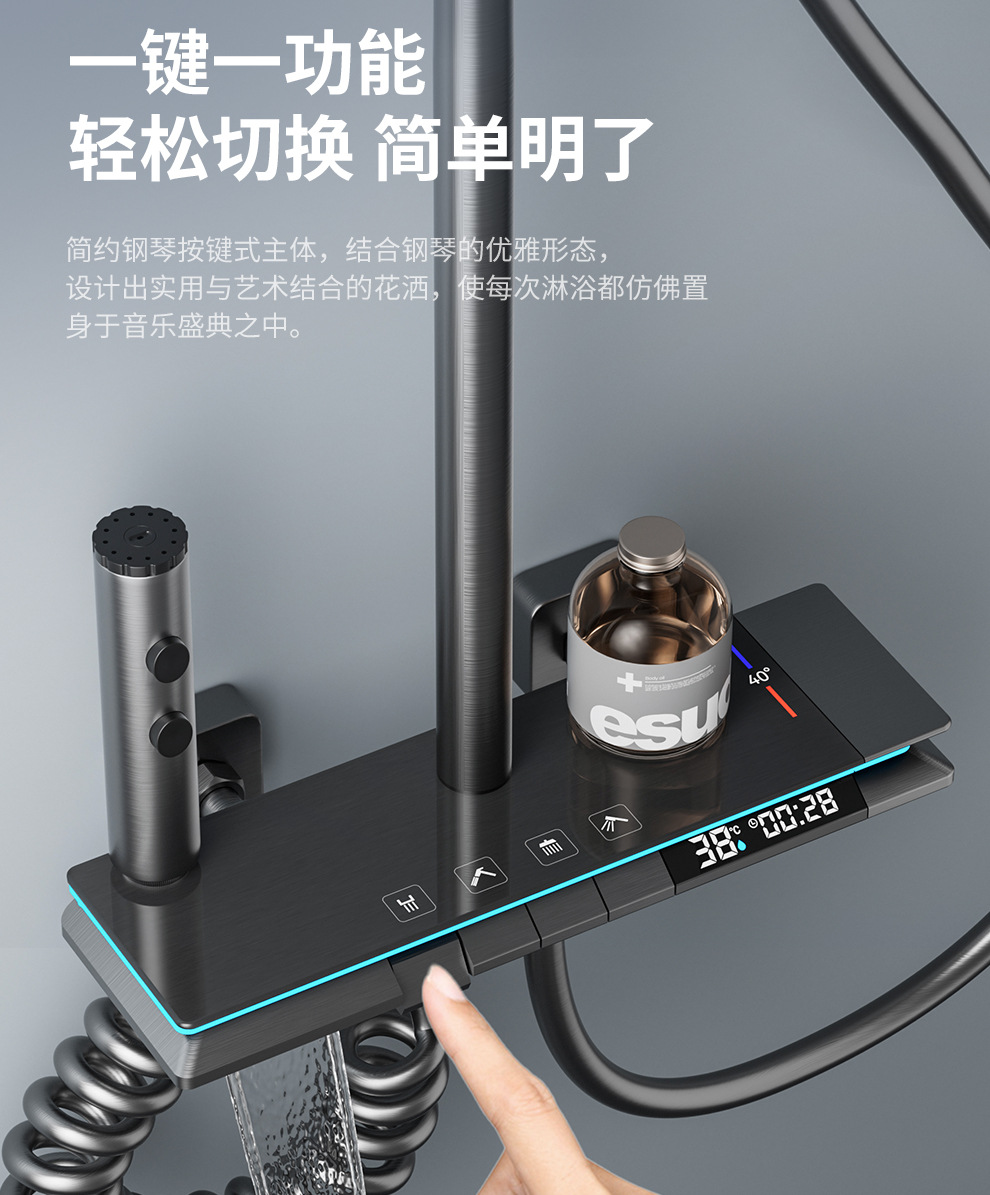 독일 GOGO 건 그레이 디지털 디스플레이 샤워 헤드 세트 주변 조명 홈 욕실 가압 레인 샤워 헤드 샤워