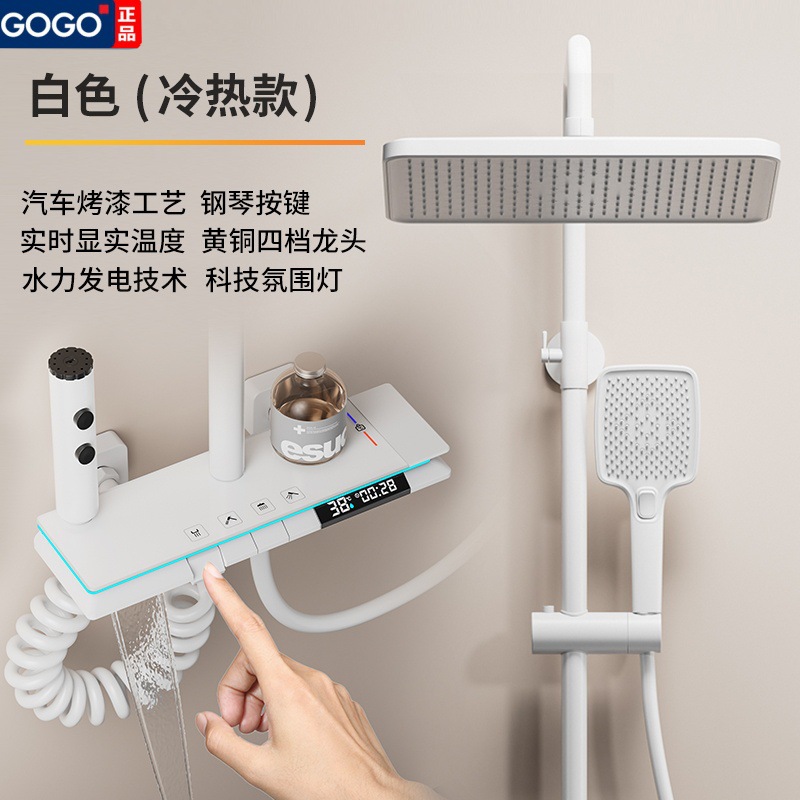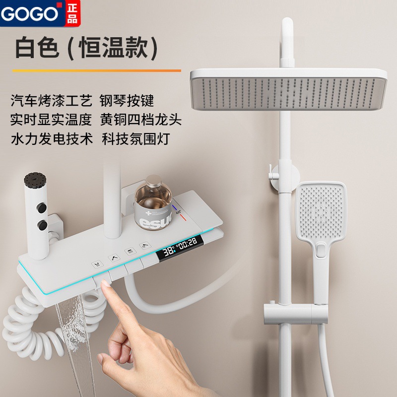 독일 GOGO 건 그레이 디지털 디스플레이 샤워 헤드 세트 주변 조명 홈 욕실 가압 레인 샤워 헤드 샤워스토어 가기