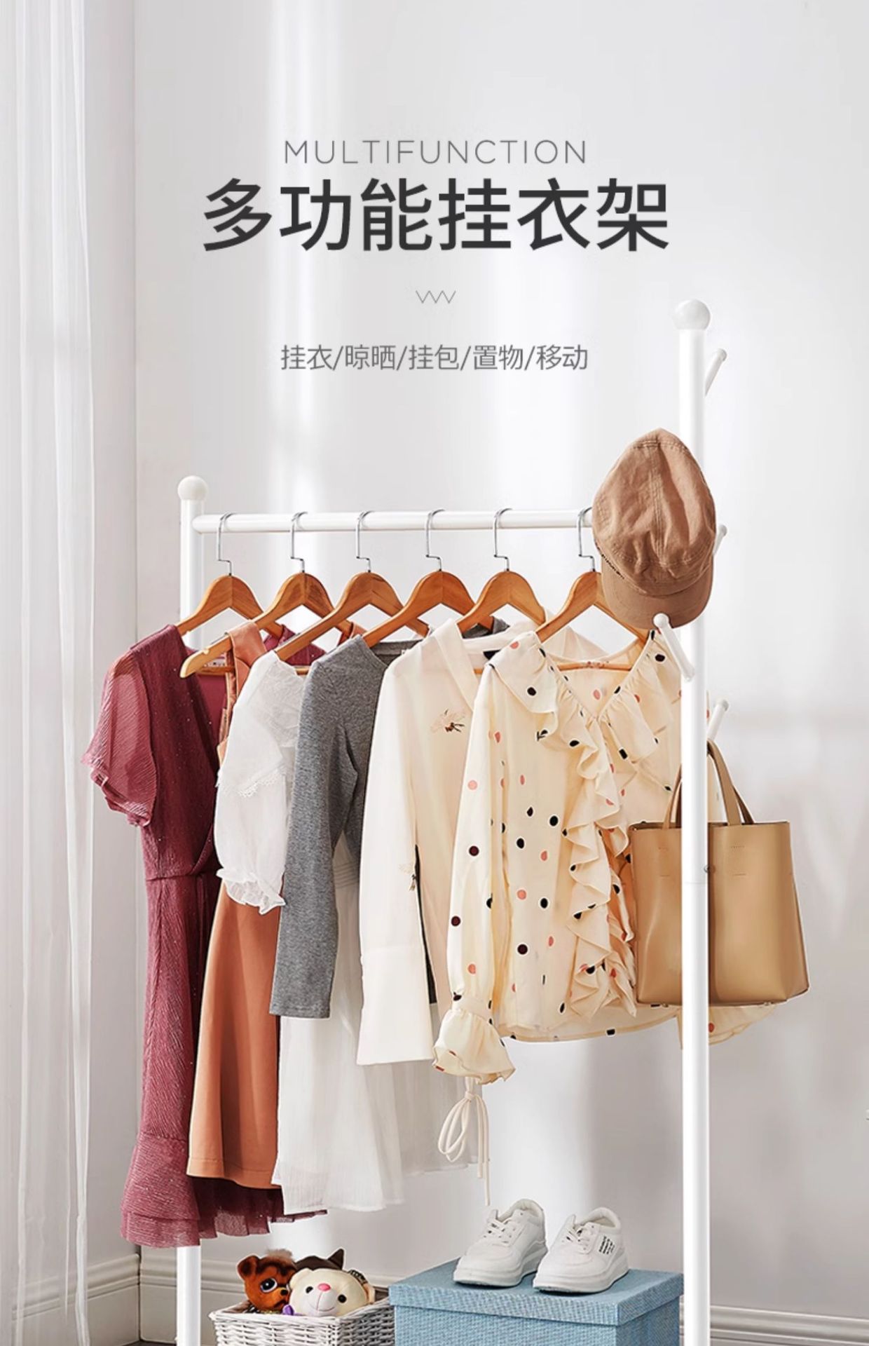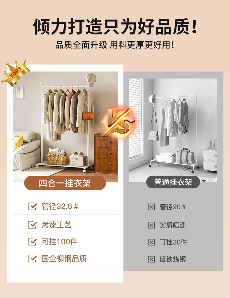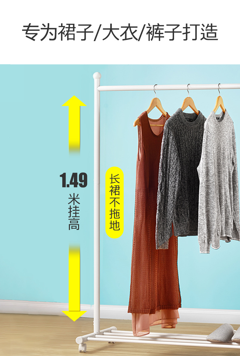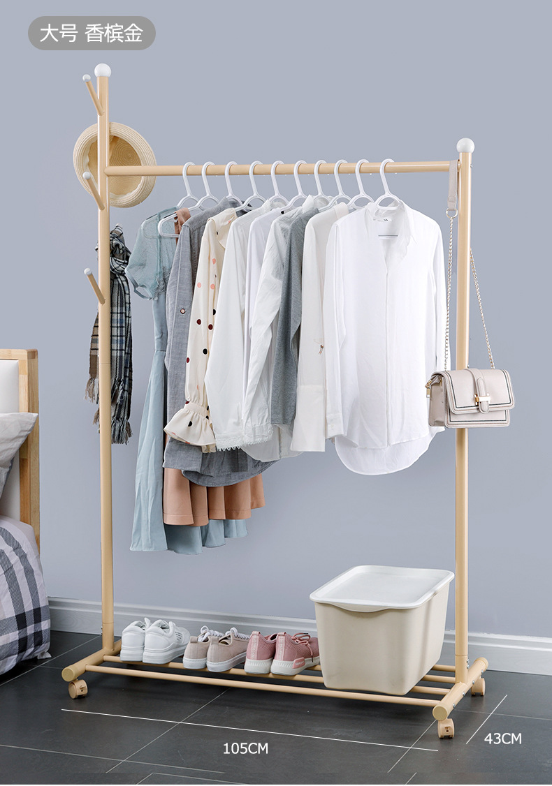 옷걸이 바닥 침실 간단한 옷걸이 이동식 홈 실내 옷걸이 옷걸이 막대형 소형 L^