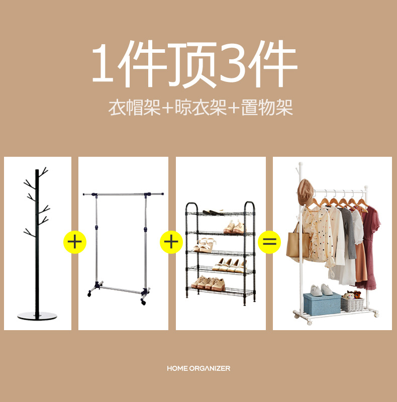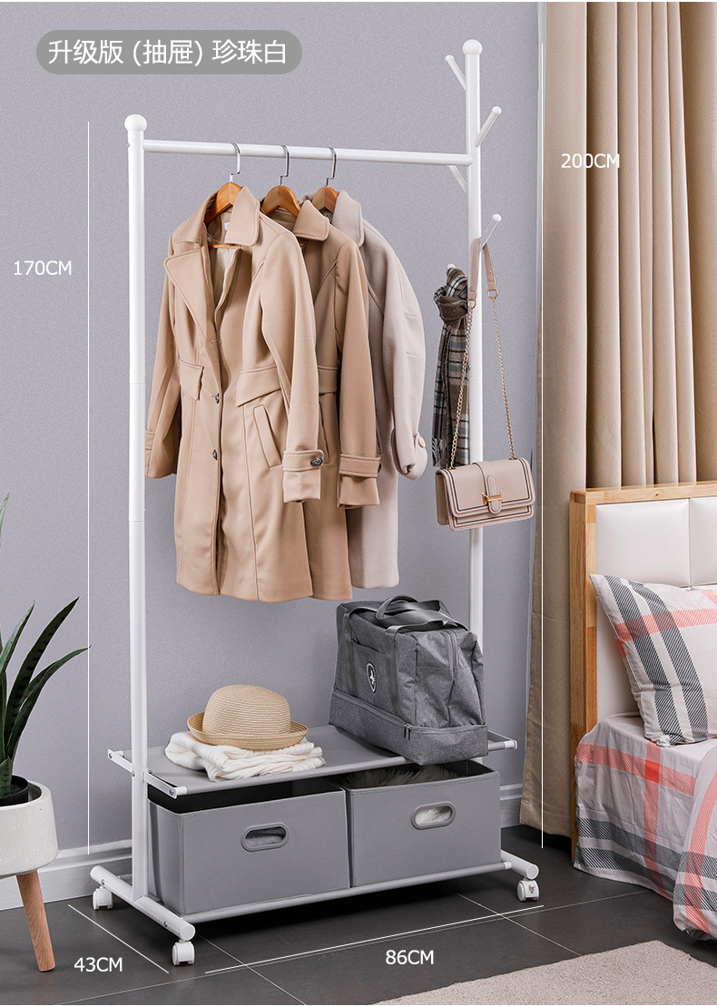 옷걸이 바닥 침실 간단한 옷걸이 이동식 홈 실내 옷걸이 옷걸이 막대형 소형 L^스토어 가기