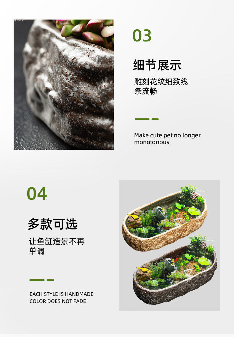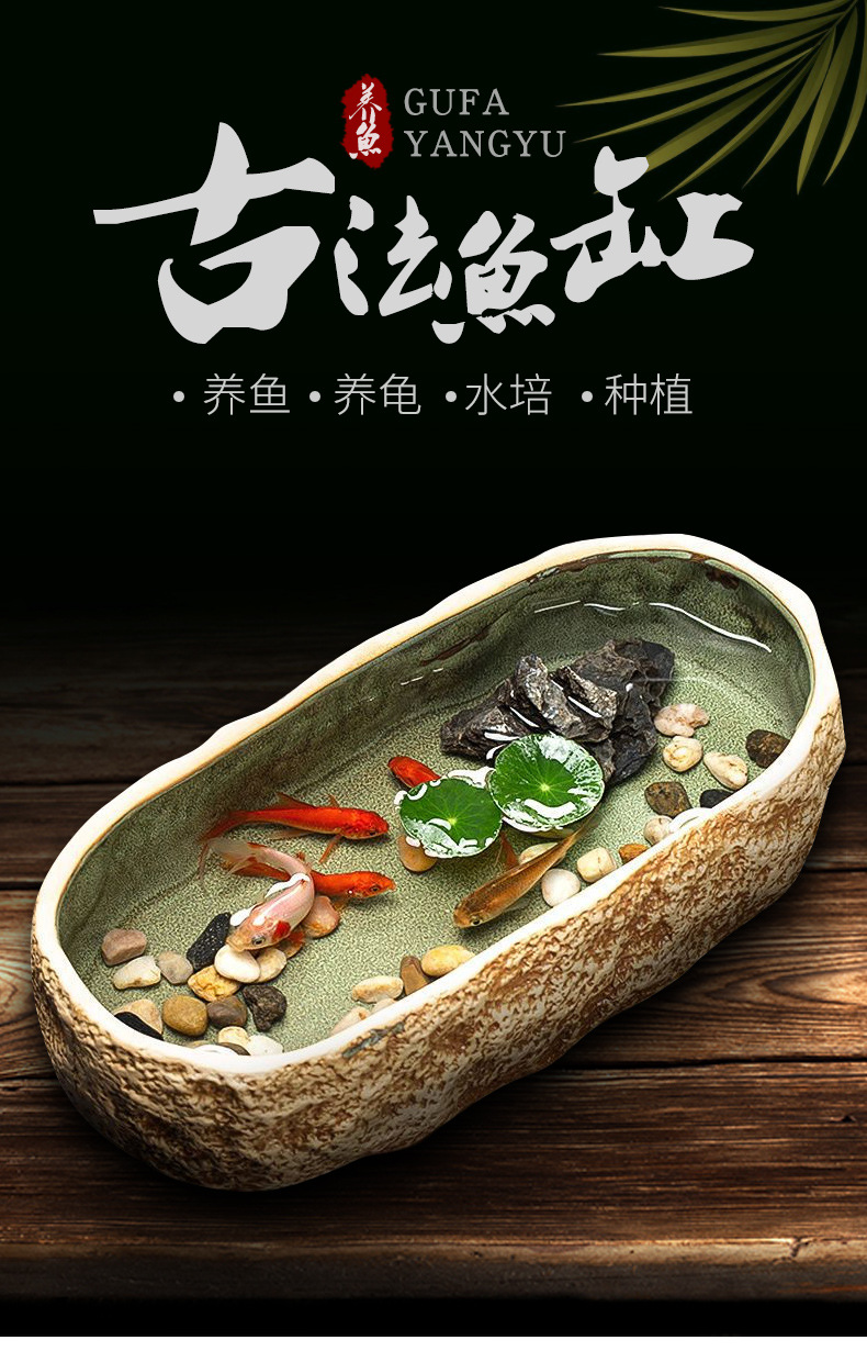 고대 방식의 수조, 생태 조경, 연꽃과 연초, 세라믹 냄비, 가정용 발코니 수경 수영장, 작은 장식 모조 돌