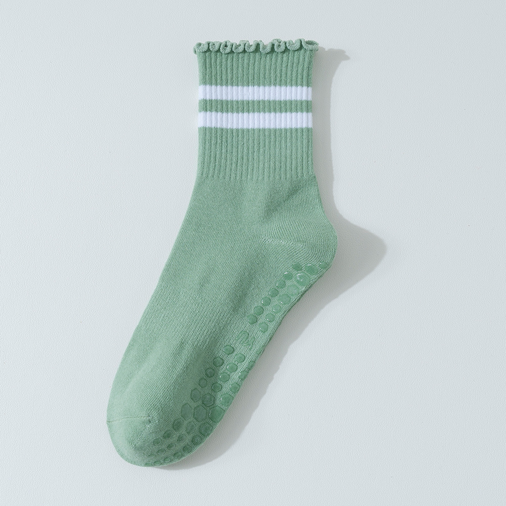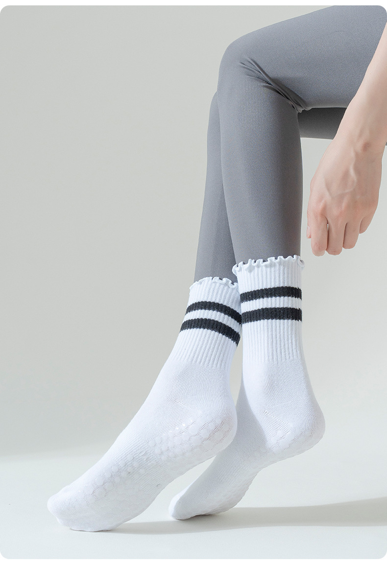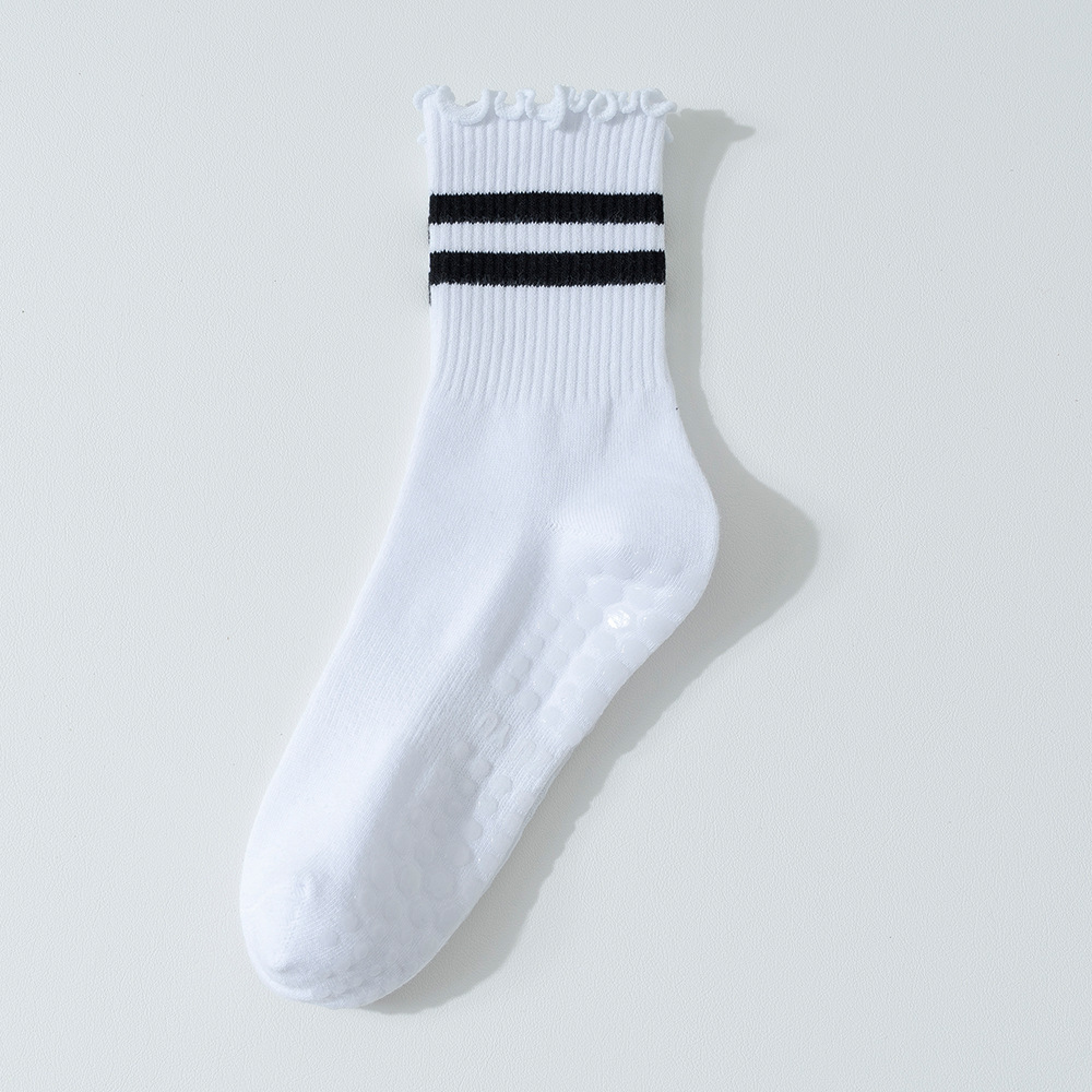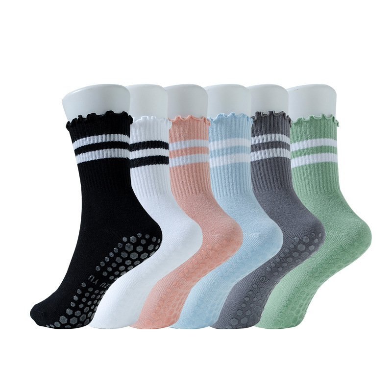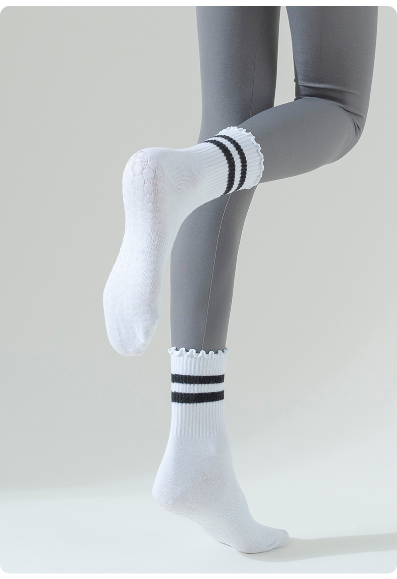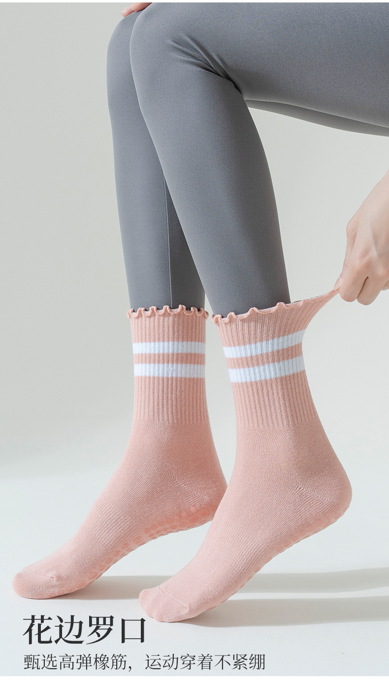 요가 양말, 여성용 종아리 중간 양말, 스포츠 양말, 실내 피트니스, 귀 레이스 줄무늬 에어로빅, 통기성 미끄럼 방지 실리콘 양말
