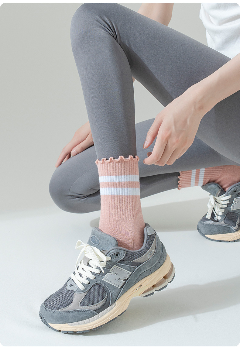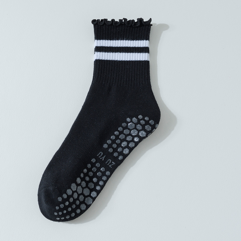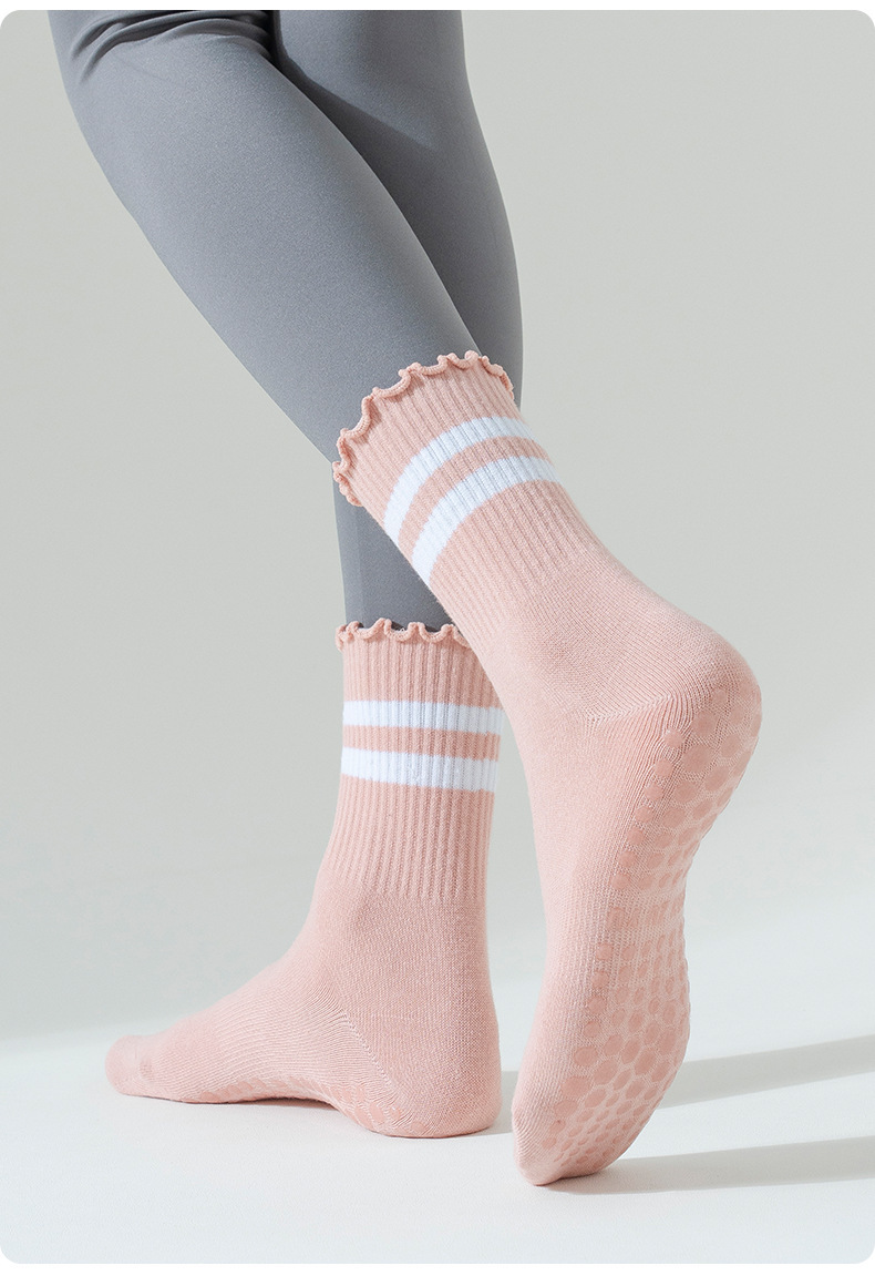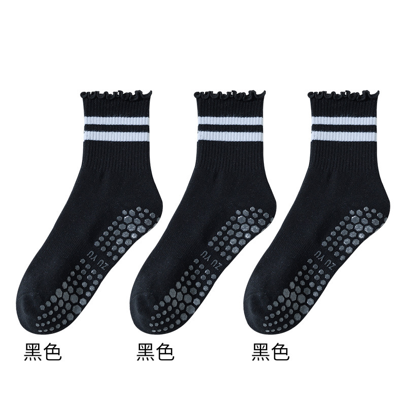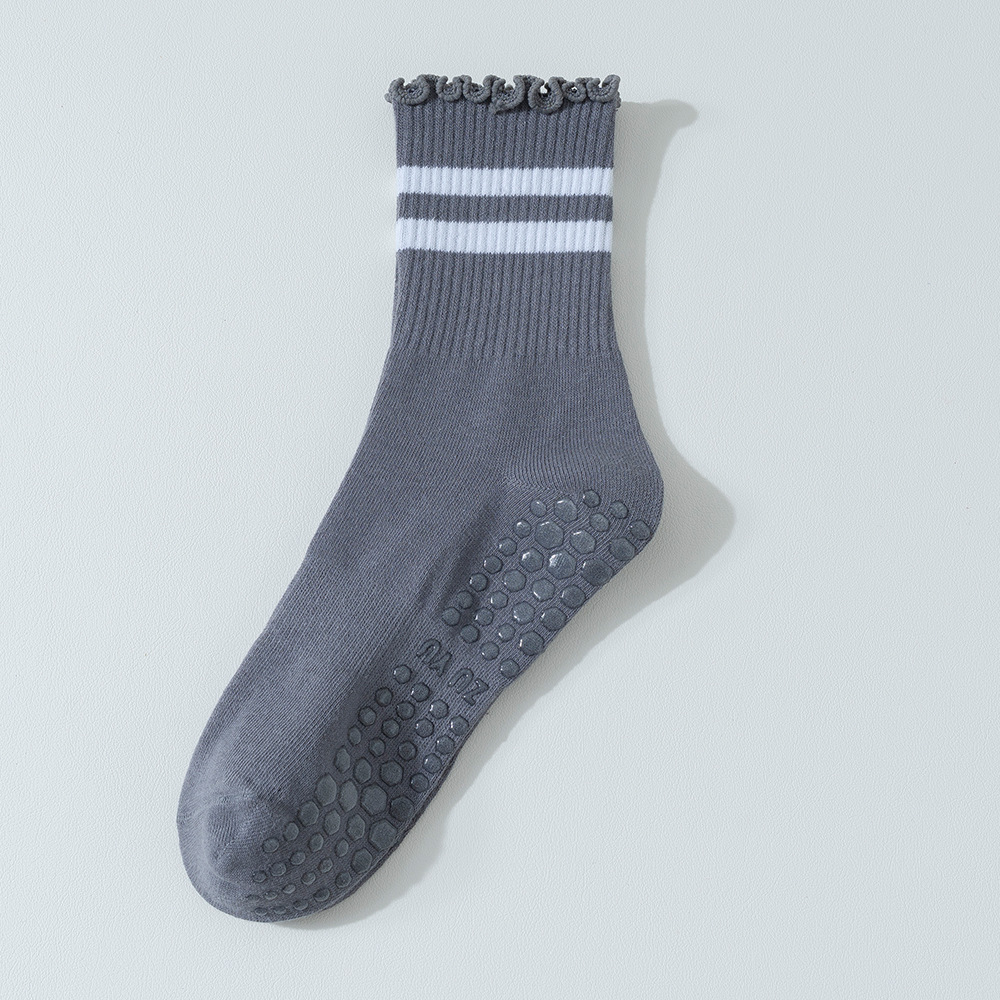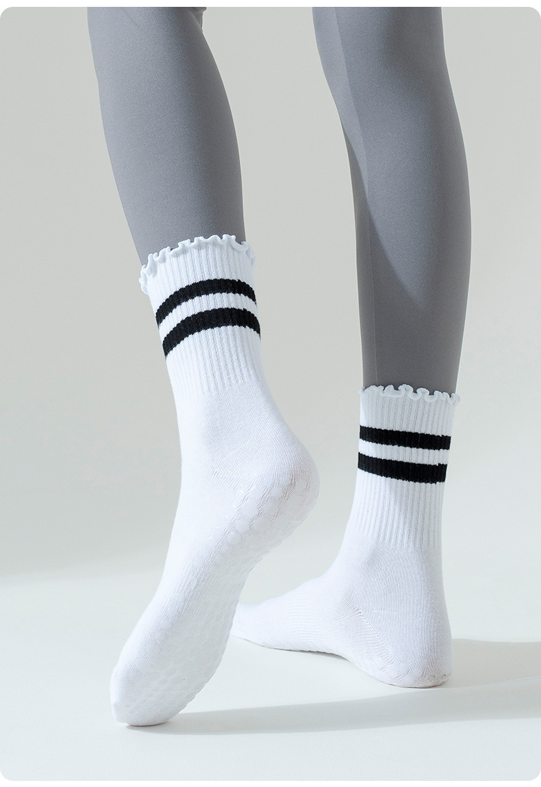 요가 양말, 여성용 종아리 중간 양말, 스포츠 양말, 실내 피트니스, 귀 레이스 줄무늬 에어로빅, 통기성 미끄럼 방지 실리콘 양말