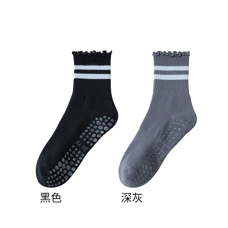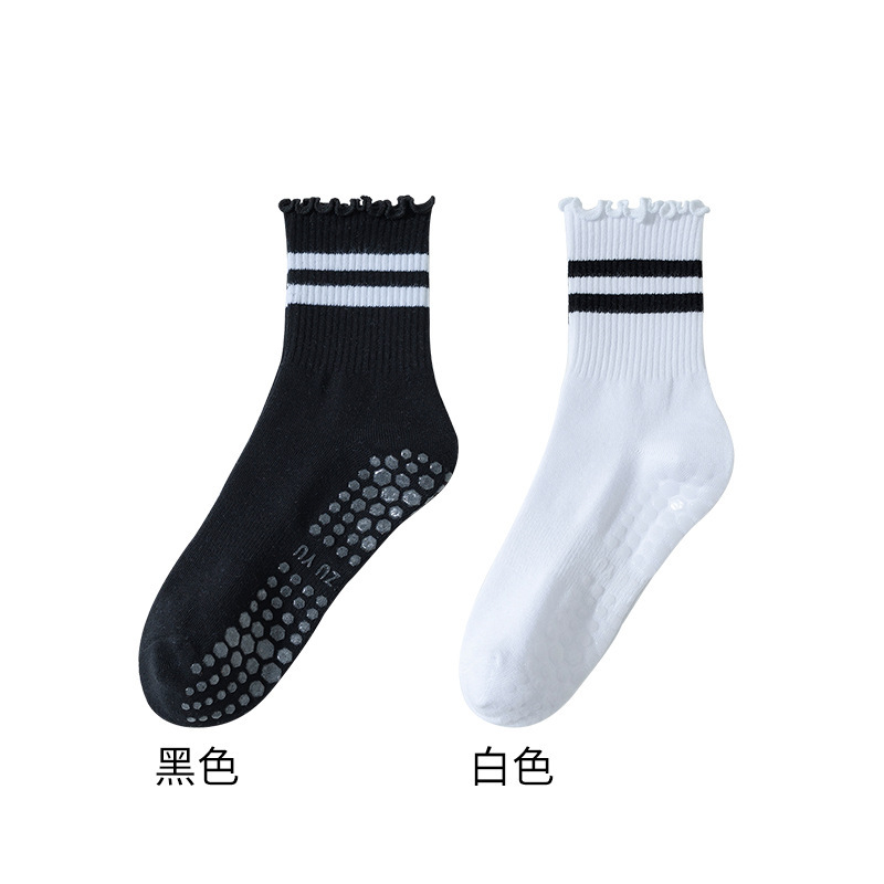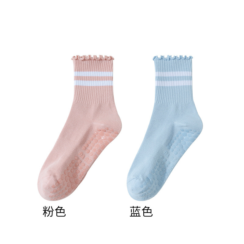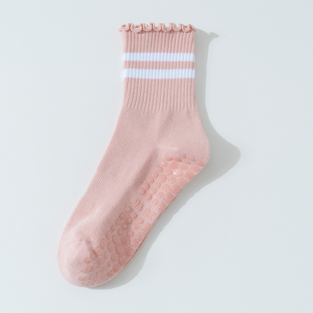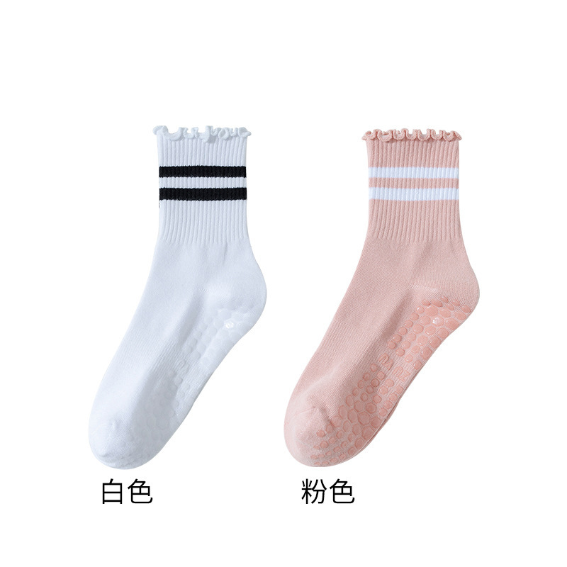 요가 양말, 여성용 종아리 중간 양말, 스포츠 양말, 실내 피트니스, 귀 레이스 줄무늬 에어로빅, 통기성 미끄럼 방지 실리콘 양말스토어 가기
