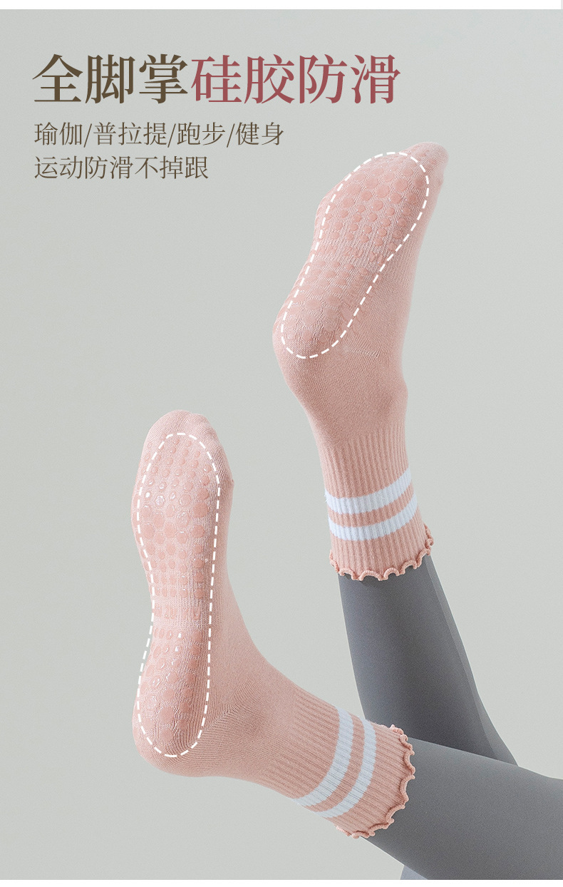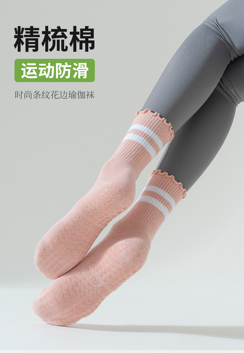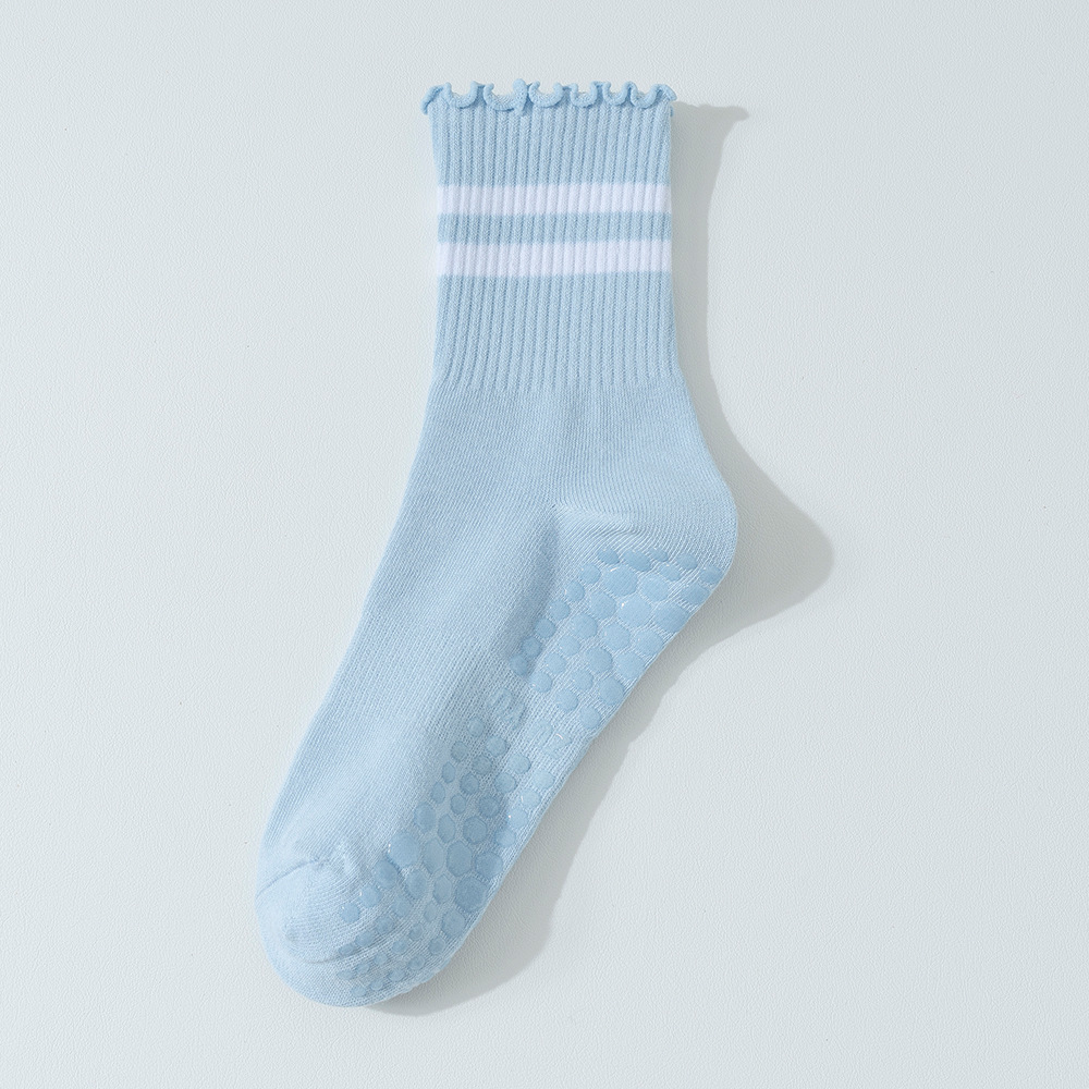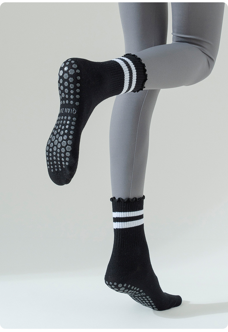 요가 양말, 여성용 종아리 중간 양말, 스포츠 양말, 실내 피트니스, 귀 레이스 줄무늬 에어로빅, 통기성 미끄럼 방지 실리콘 양말스토어 가기