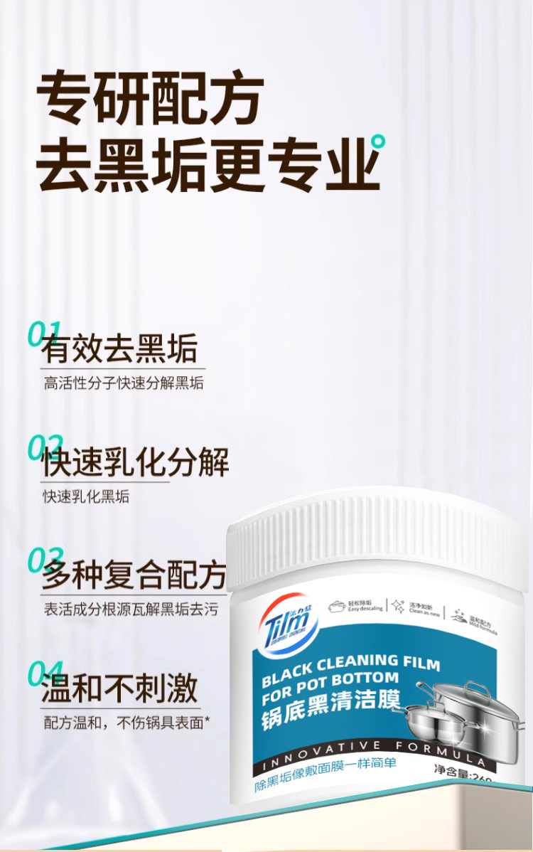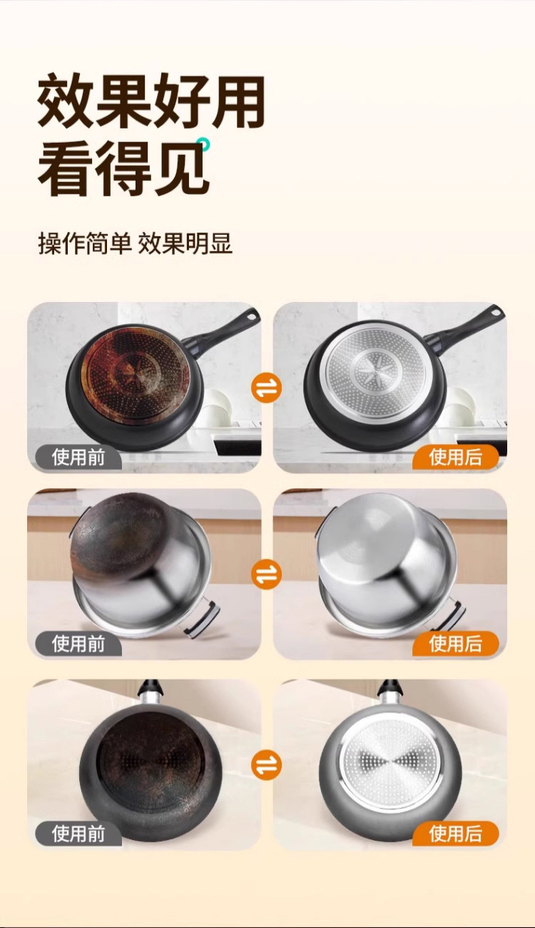 냄비 바닥의 검은 때를 제거하는 철냄비 세척제, 강력한 검은색 필름을 사용하여 냄비를 청소하고 중유를 제거하는 마스크