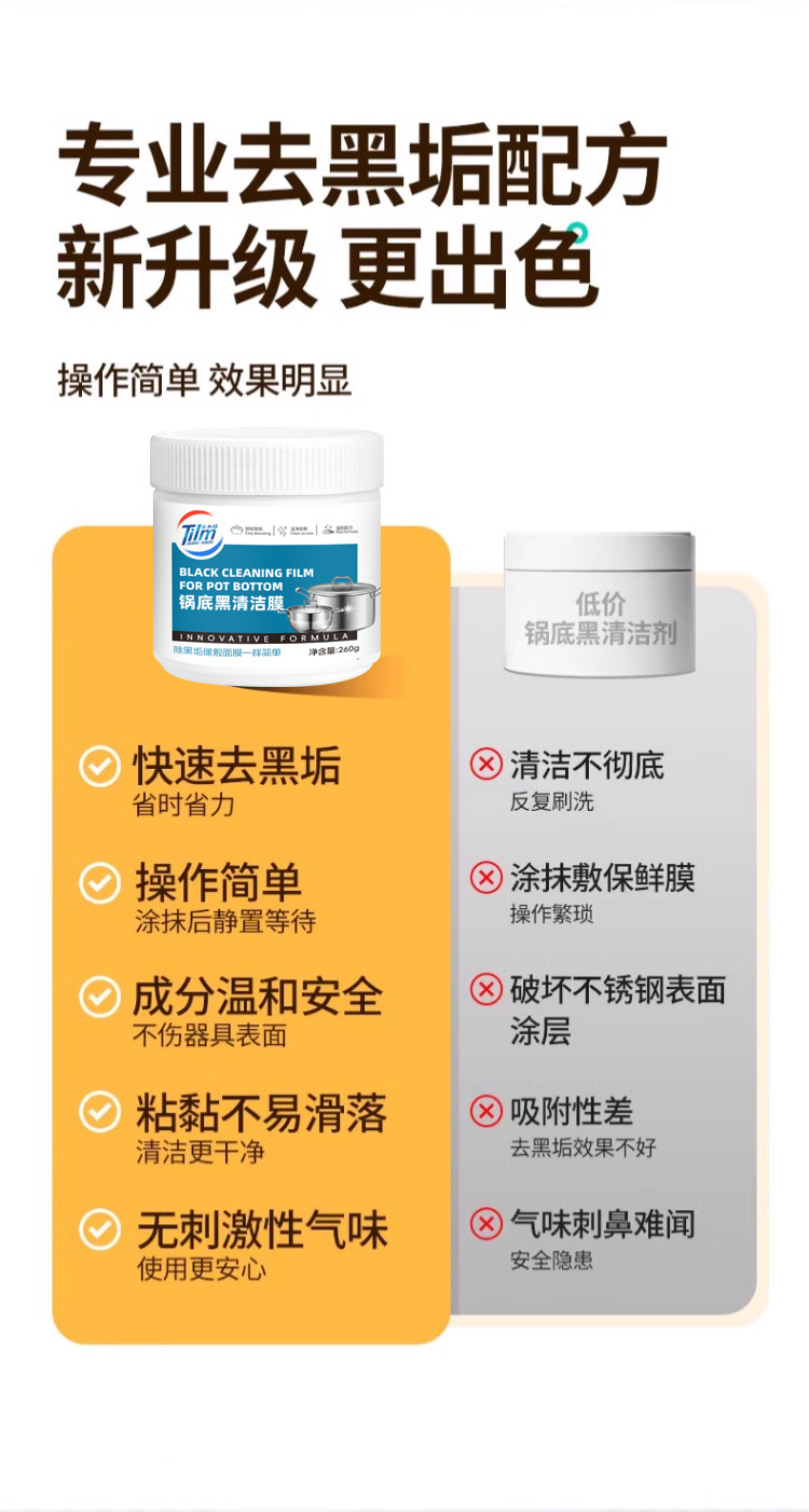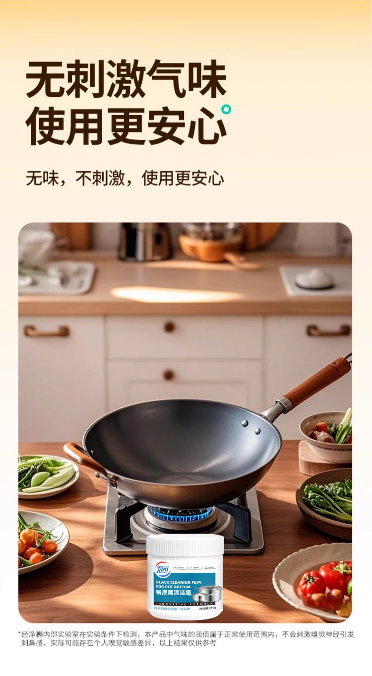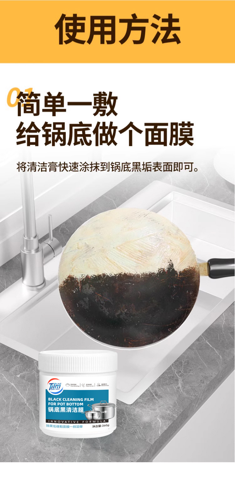 냄비 바닥의 검은 때를 제거하는 철냄비 세척제, 강력한 검은색 필름을 사용하여 냄비를 청소하고 중유를 제거하는 마스크스토어 가기