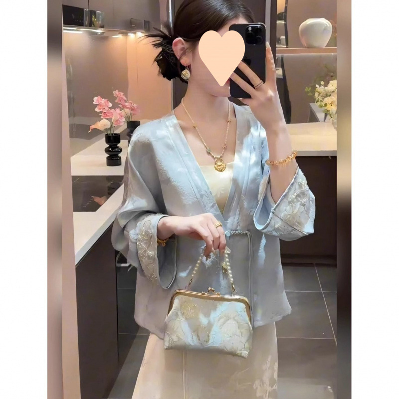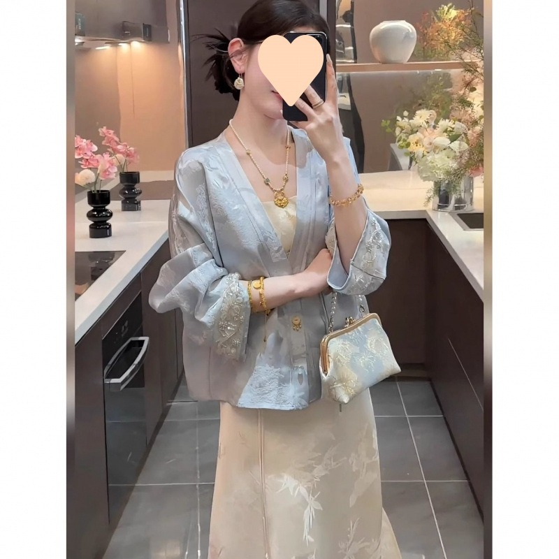 新中式国风旗袍套装裙女大码胖mm提花外套半身裙子气质高级两件套