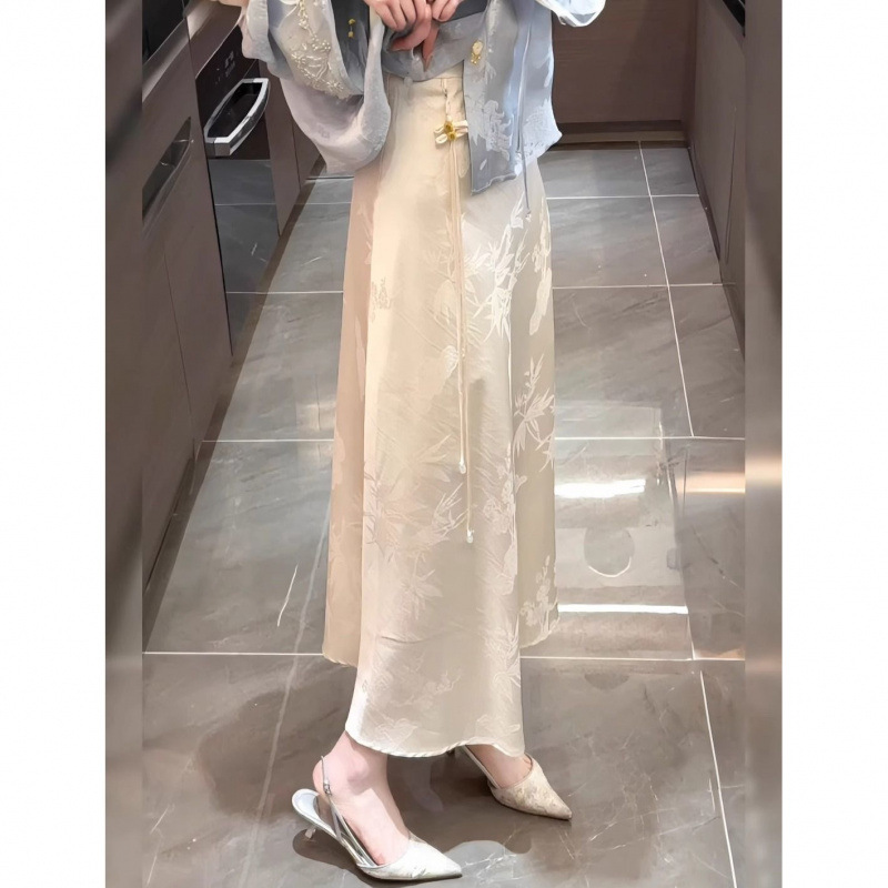 여성을 위한 새로운 중국 스타일 치파오 정장 스커트, 플러스 사이즈 뚱뚱한 자카드 재킷, 하프 스커트, 우아한 하이 엔드 투피스 세트