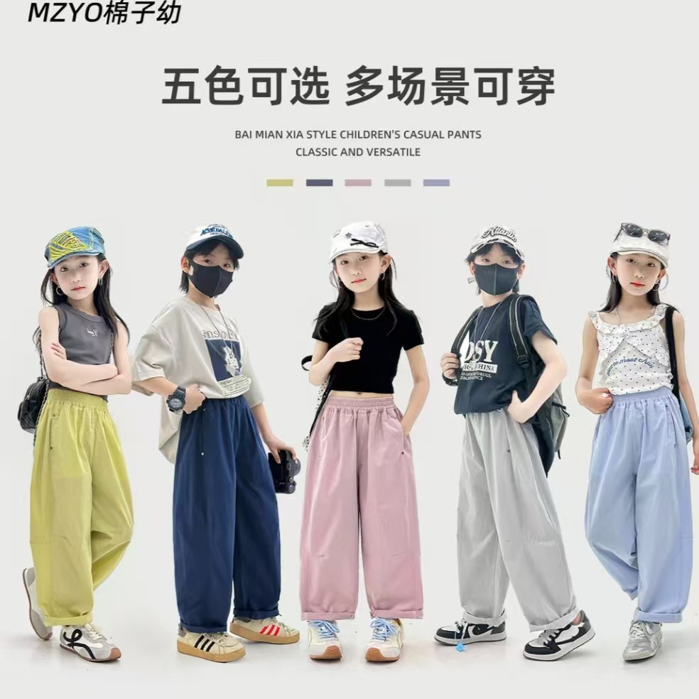 얇은 남아 및 여아용 바지, 캐주얼 바지, 아동복, 와이드 레그 아동복, 여름 아우터 바지, 캐주얼하고 편안한 바지