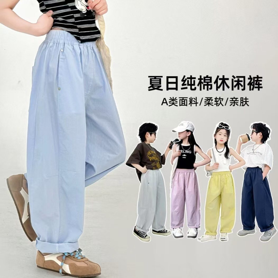 얇은 남아 및 여아용 바지, 캐주얼 바지, 아동복, 와이드 레그 아동복, 여름 아우터 바지, 캐주얼하고 편안한 바지스토어 가기