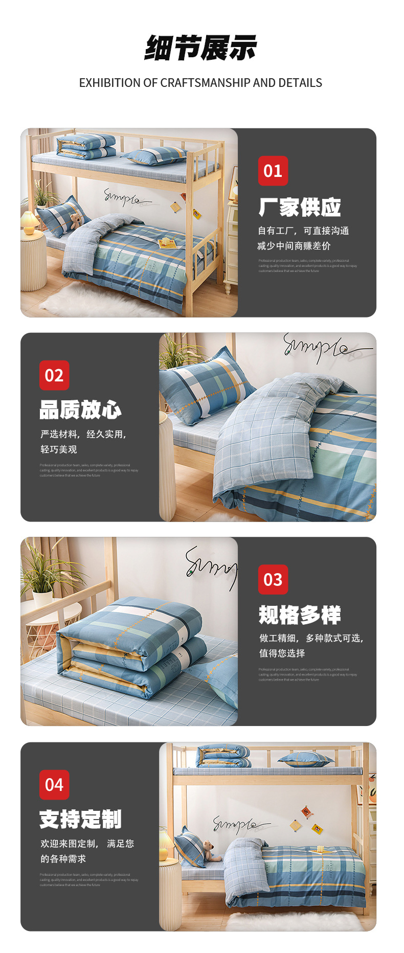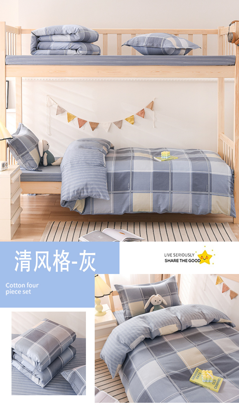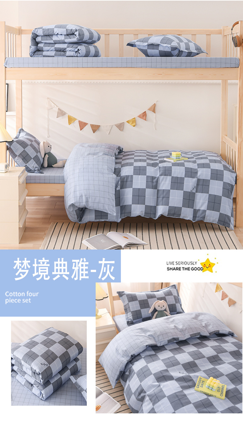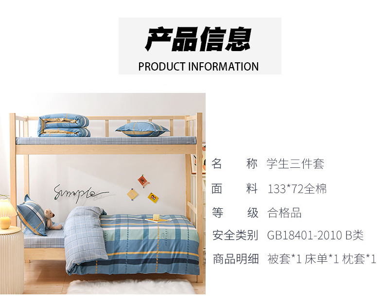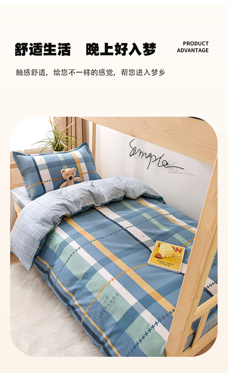 학생 기숙사 순면 3피스 이불 커버 기숙사 베개 커버 3피스 침구 세트 학생 기숙사 이불 코어