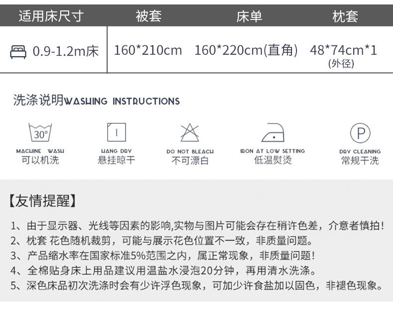 • 0.9m 순면 3피스 침대 세트: 이불커버 160*210, 시트 160*220, 베갯잇 48*74