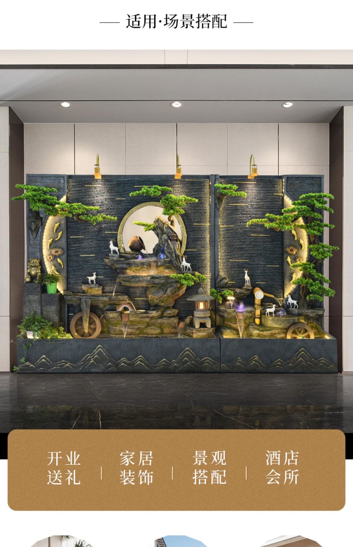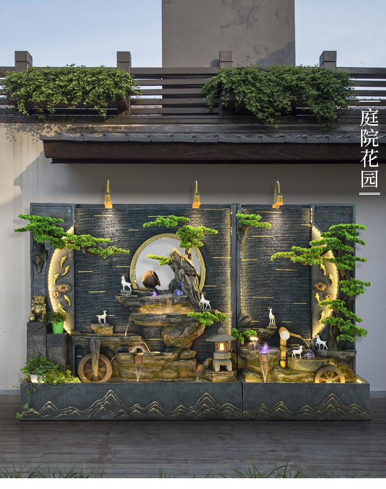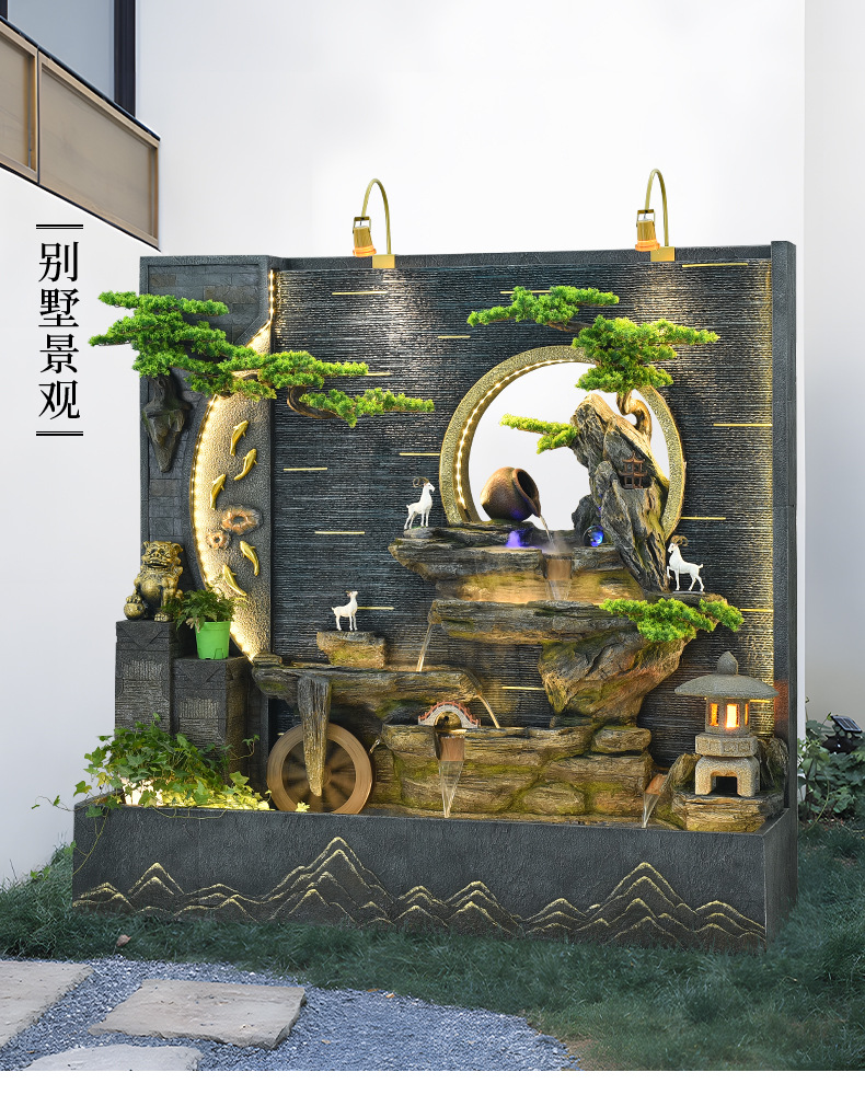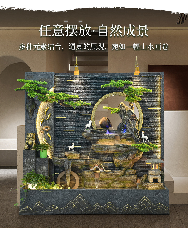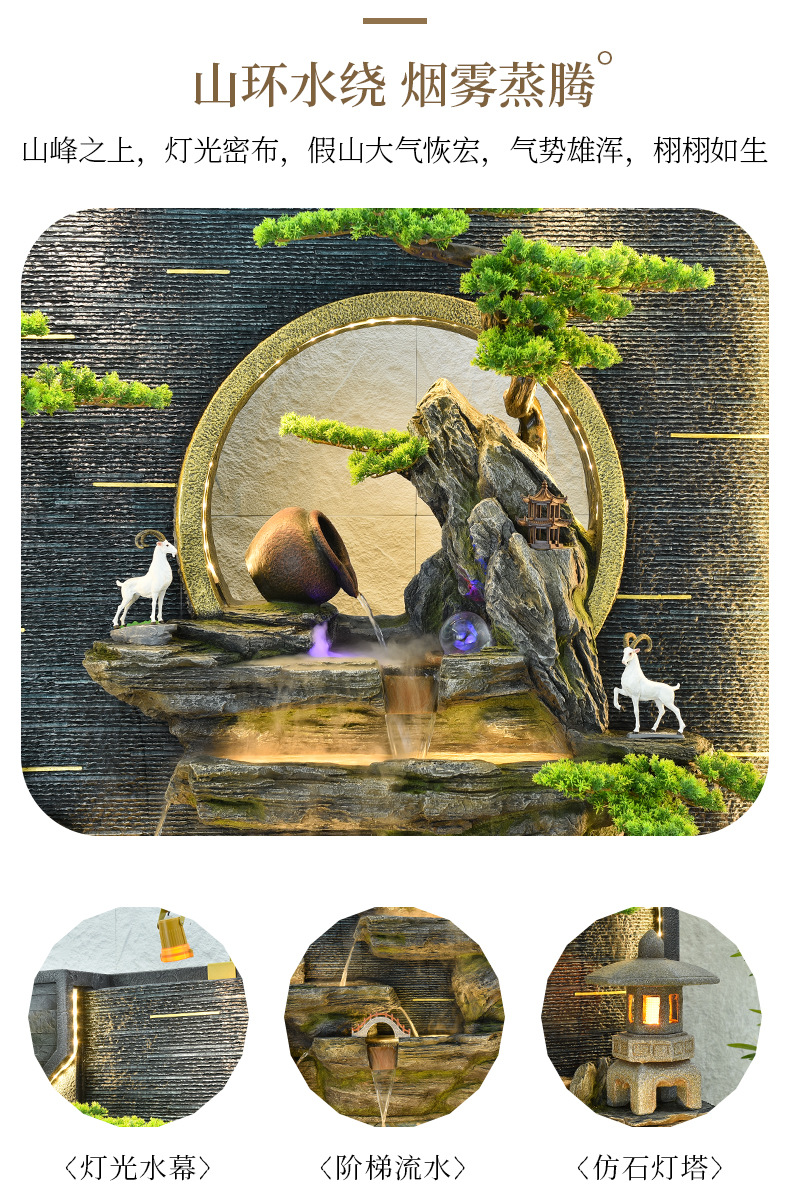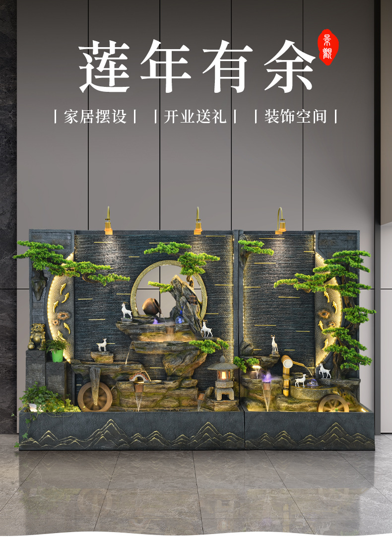 가짜 바위 흐르는 물 분수 대형 바닥에서 천장까지 물 커튼 스크린 실내 거실 물 풍경 장식 회사 개업 장식품스토어 가기