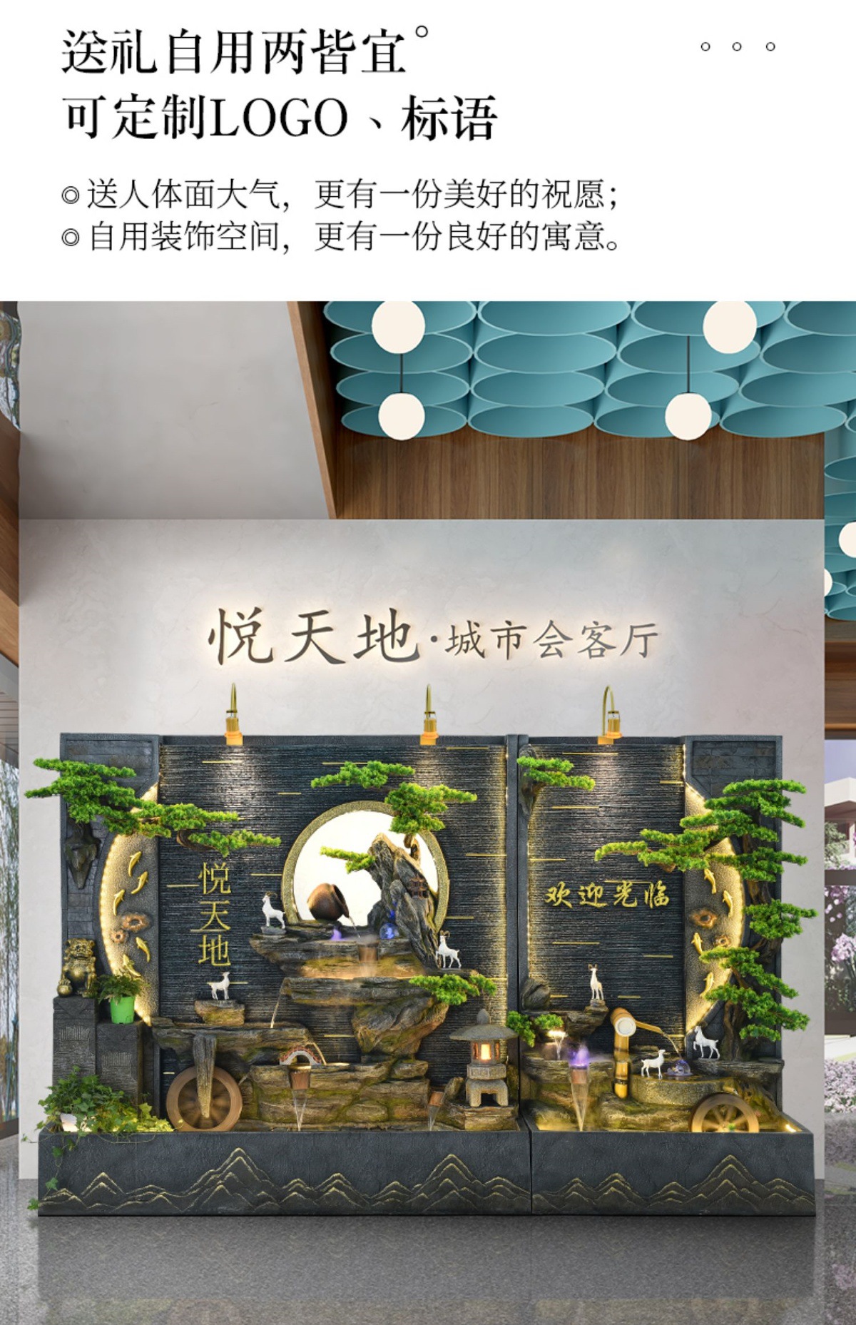 가짜 바위 흐르는 물 분수 대형 바닥에서 천장까지 물 커튼 스크린 실내 거실 물 풍경 장식 회사 개업 장식품