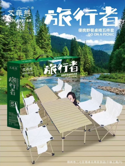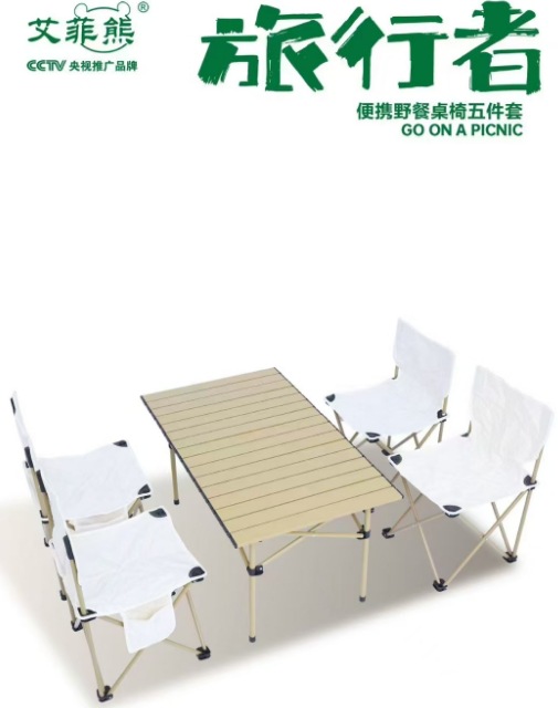 Effie Bear Traveler 5피스 테이블 및 의자 야외 캠핑 피크닉 접이식 테이블 및 의자 세트 4S 매장 이벤트 선물스토어 가기