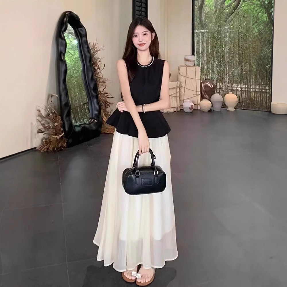여름 2025 여성을 위한 여왕 스타일의 다양한 스타일의 비즈 민소매 드레스 새로운 틈새 디자인 대형 스커트 롱 스커트스토어 가기