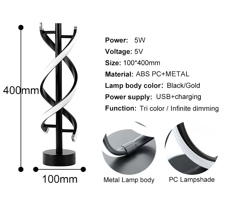 2025년 새로운 크로스보더 전자상거래 특별히 현대적인 나선형 테이블 램프, 간단하고 조절 가능한 LED 테이블 램프, USB 전원 테이블 램프