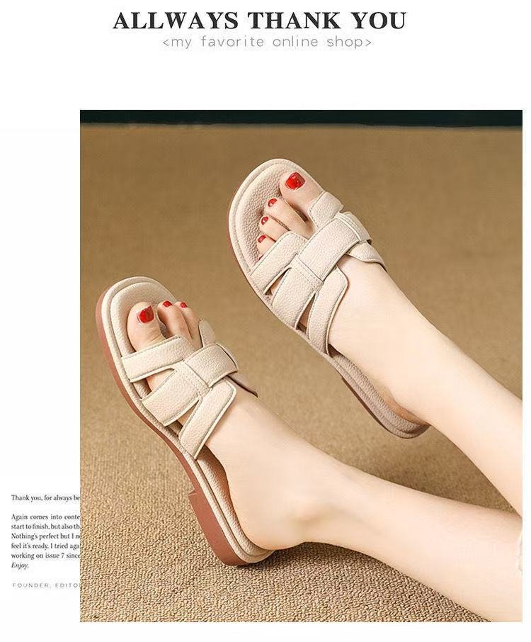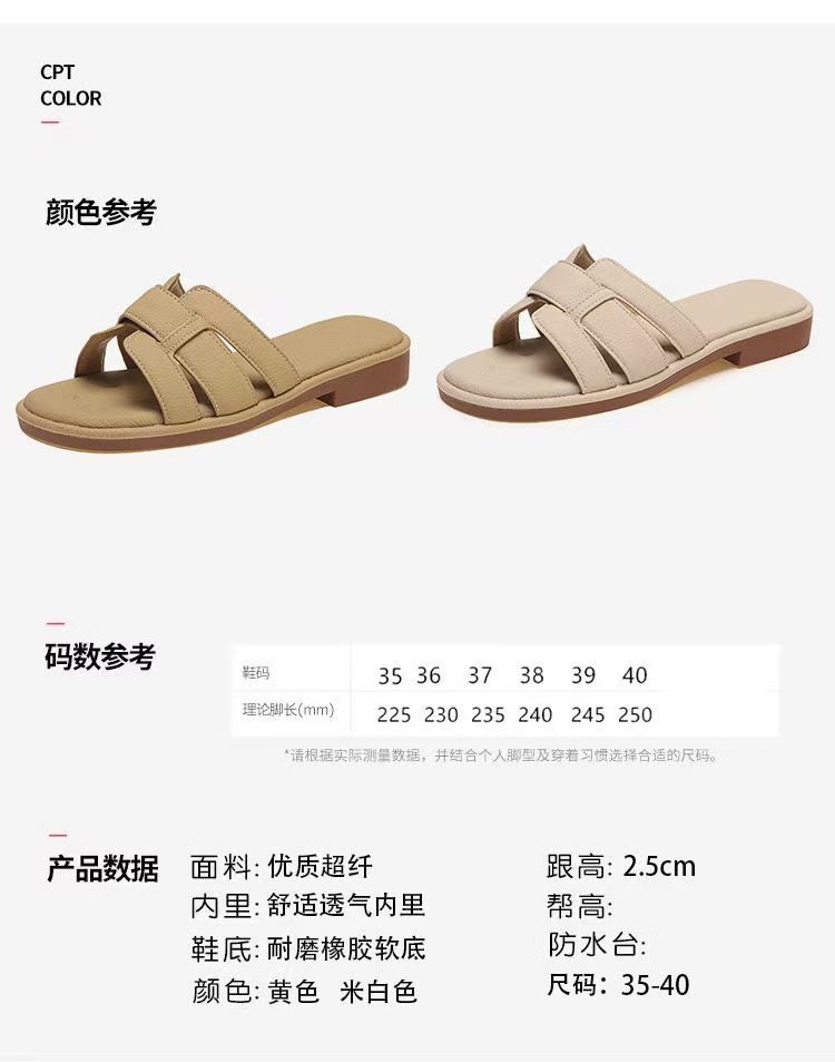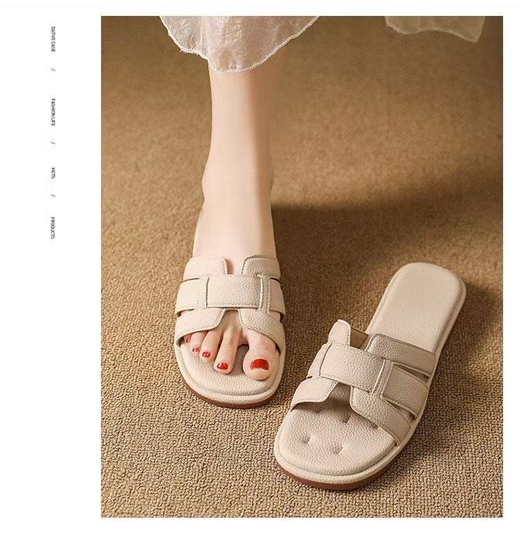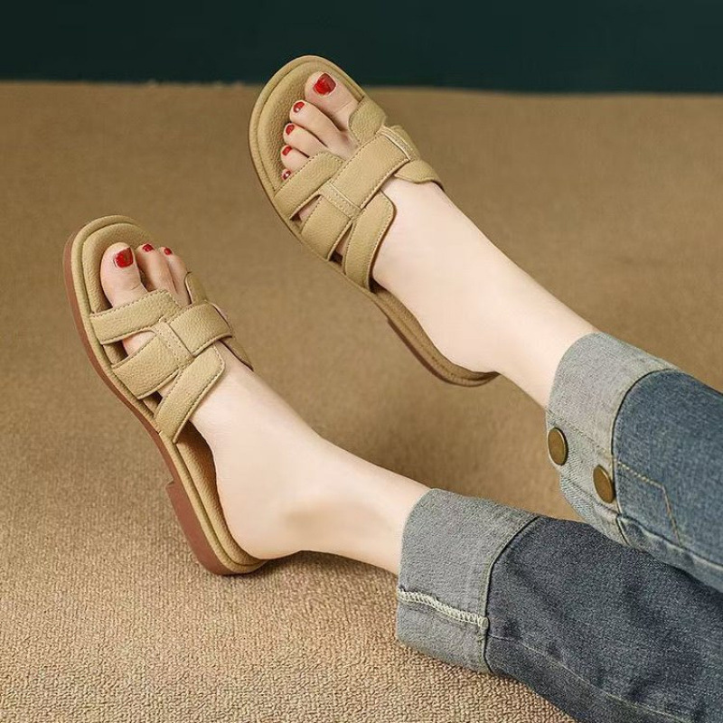 여성을 위한 대외 무역 인기 슬리퍼 2025 여름 새로운 한국 스타일 패션 스퀘어 토 로우 힐 원라인 오픈 토 부드러운 밑창으로 발이 피곤하지 않음스토어 가기