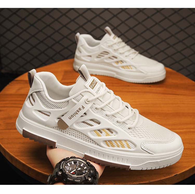 Moyao 남자 신발 2025 여름 새로운 메쉬 캐주얼 플랫 신발 부드러운 밑창 흰색 신발 남자 스포츠 유행 신발
