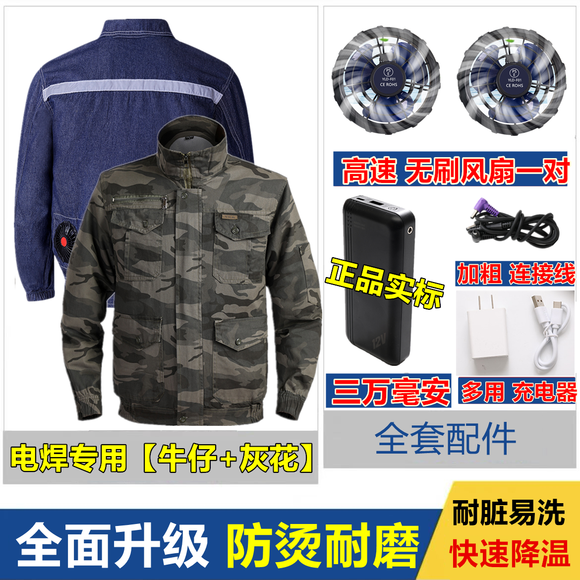 팬이 달린 여름 냉각 에어컨 의류 건설 현장 충전식 냉동 용접공 남성용 화상 방지 노동 보호 작업복스토어 가기