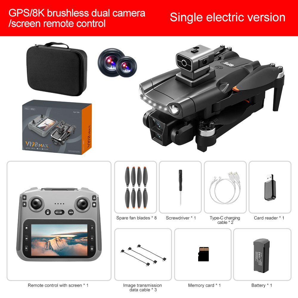 국경 간 신제품 V198MAX 브러시리스 GPS 반환 화면 고화질 항공 사진 장애물 회피 드론 대외 무역 원격 제어 항공기
