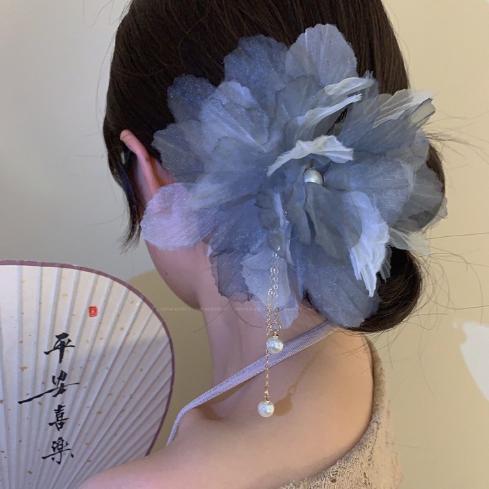 • F1486 블루 그레이 펄 페더 오간자 클립