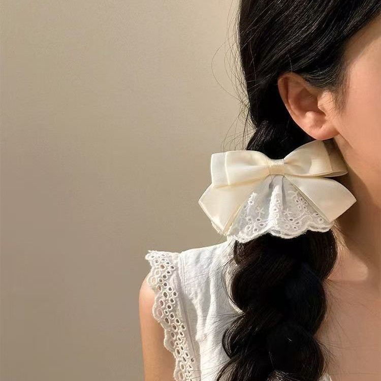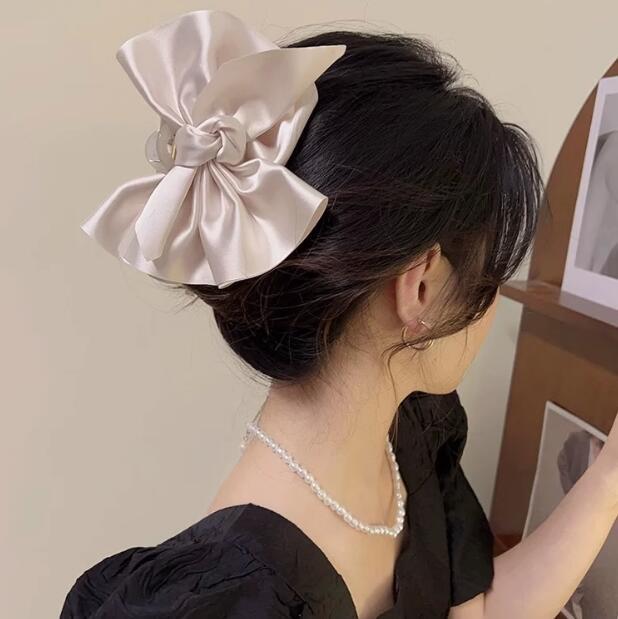 • F1449 화이트 햅번 프렌치 새틴 보우 클립