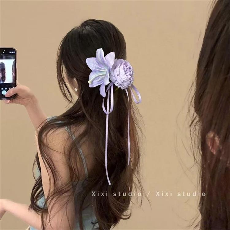 비가 내린다! 고대풍 나비 꽃 머리핀 여성용 신중국풍 꽃무늬 집게핀 한복 치파오 머리 장식 액세서리 도매