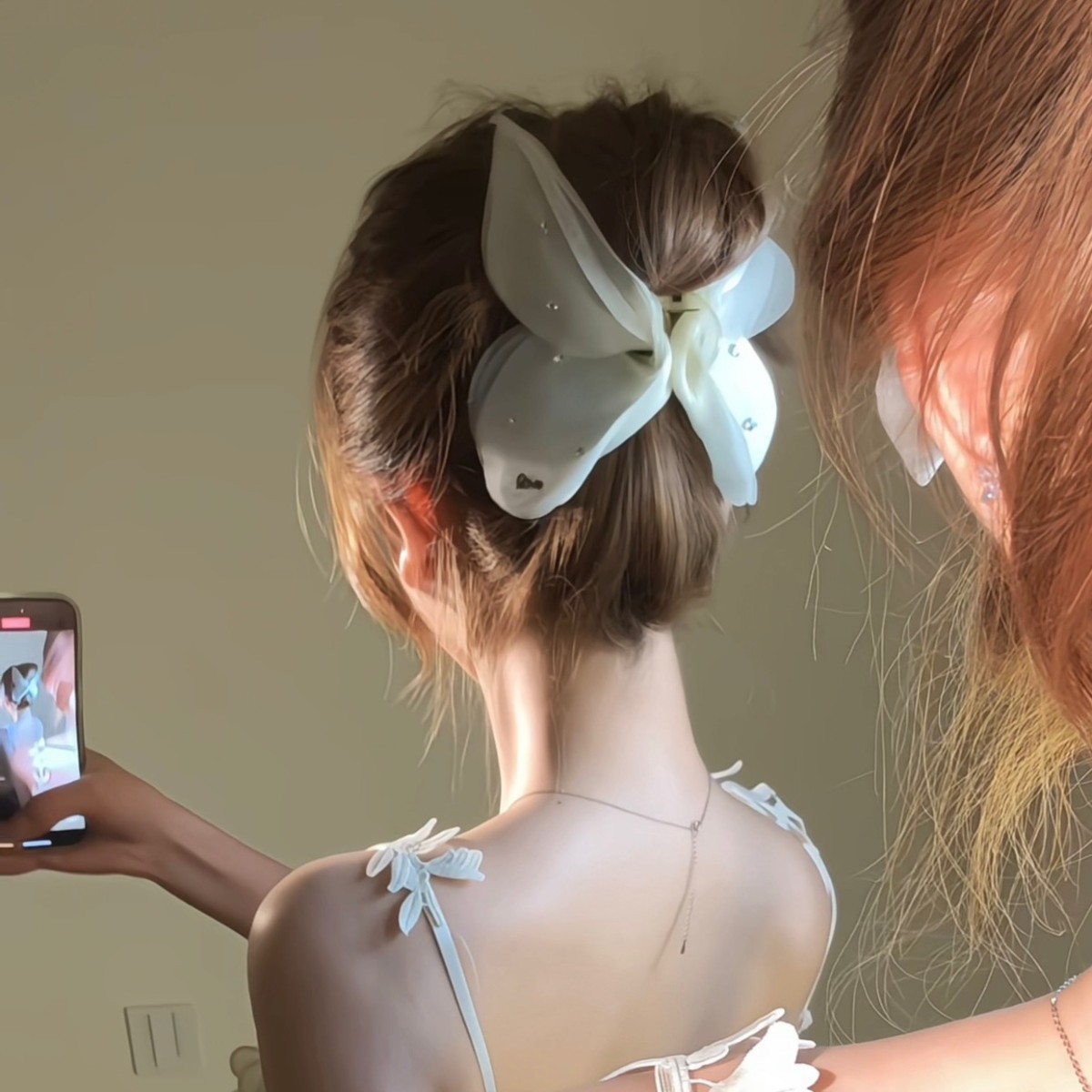 • F1459 화이트 메쉬 나비 포니테일 클립