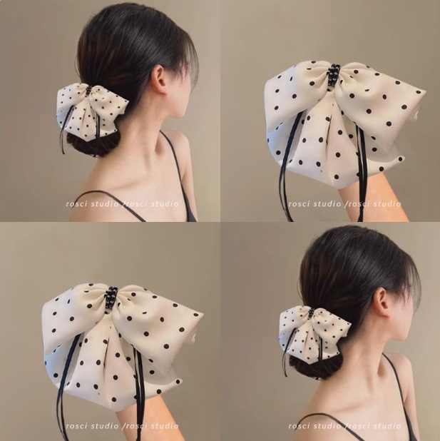 • F1461 블랙 보우 폴카 도트 스트리머 클립