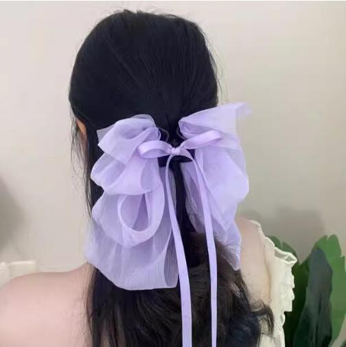 • F1459 보라색 메쉬 나비 포니테일 클립