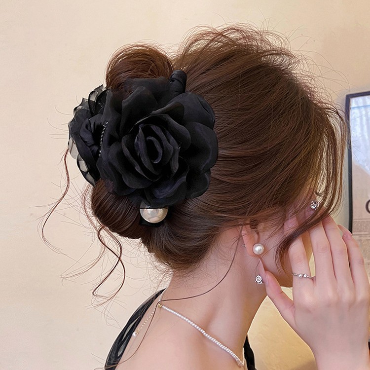 • F1459 블랙 메쉬 나비 포니테일 클립