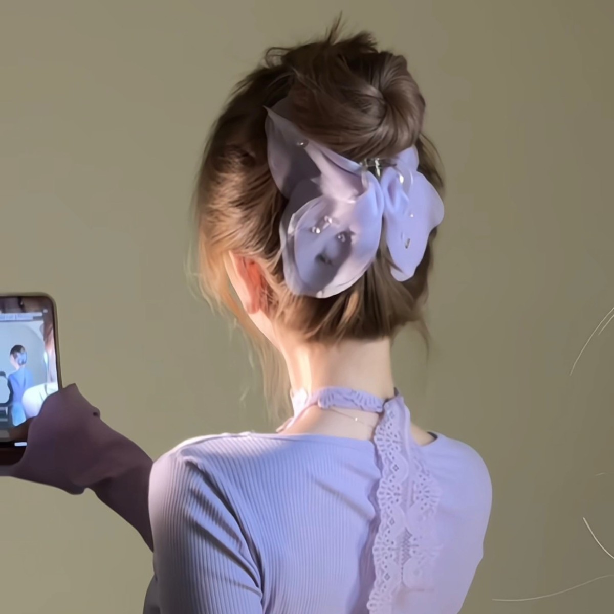 • F1448 블랙 메쉬 리본 보우 포니테일 클립