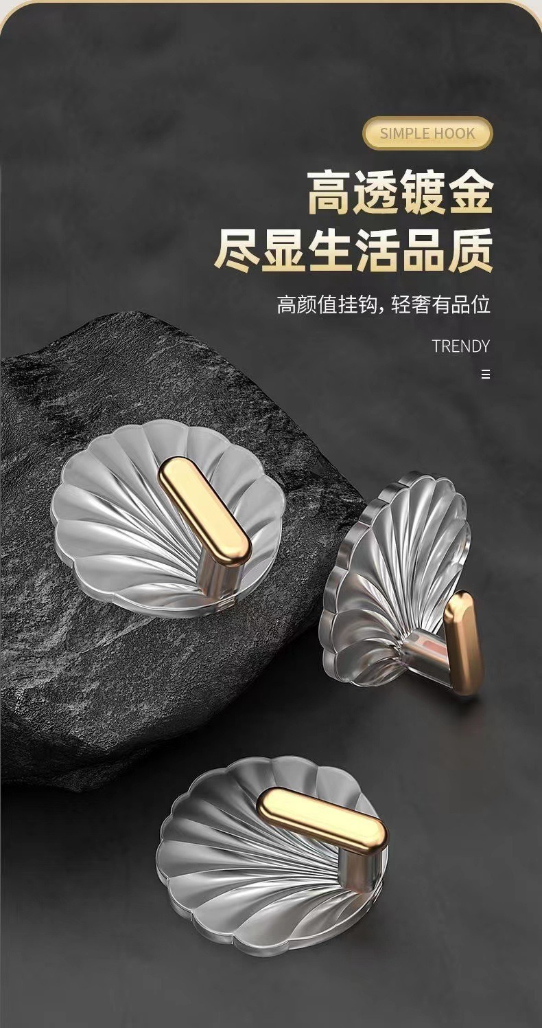 펀치가 없는 가벼운 고급 쉘 후크, 고하중, 흔적 없는 접착 후크, 욕실, 화장실, 주방 벽, 문 뒤에 옷 걸이 후크