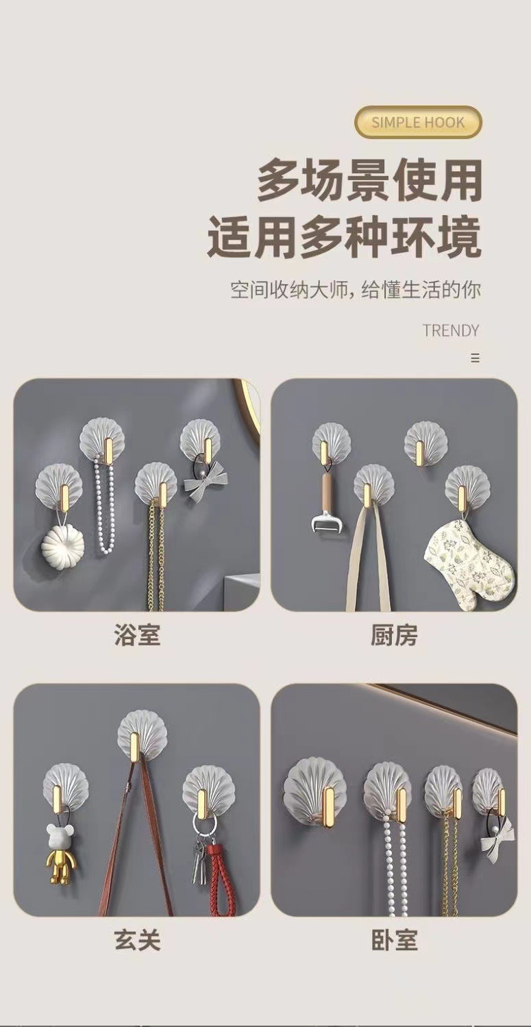 펀치가 없는 가벼운 고급 쉘 후크, 고하중, 흔적 없는 접착 후크, 욕실, 화장실, 주방 벽, 문 뒤에 옷 걸이 후크스토어 가기