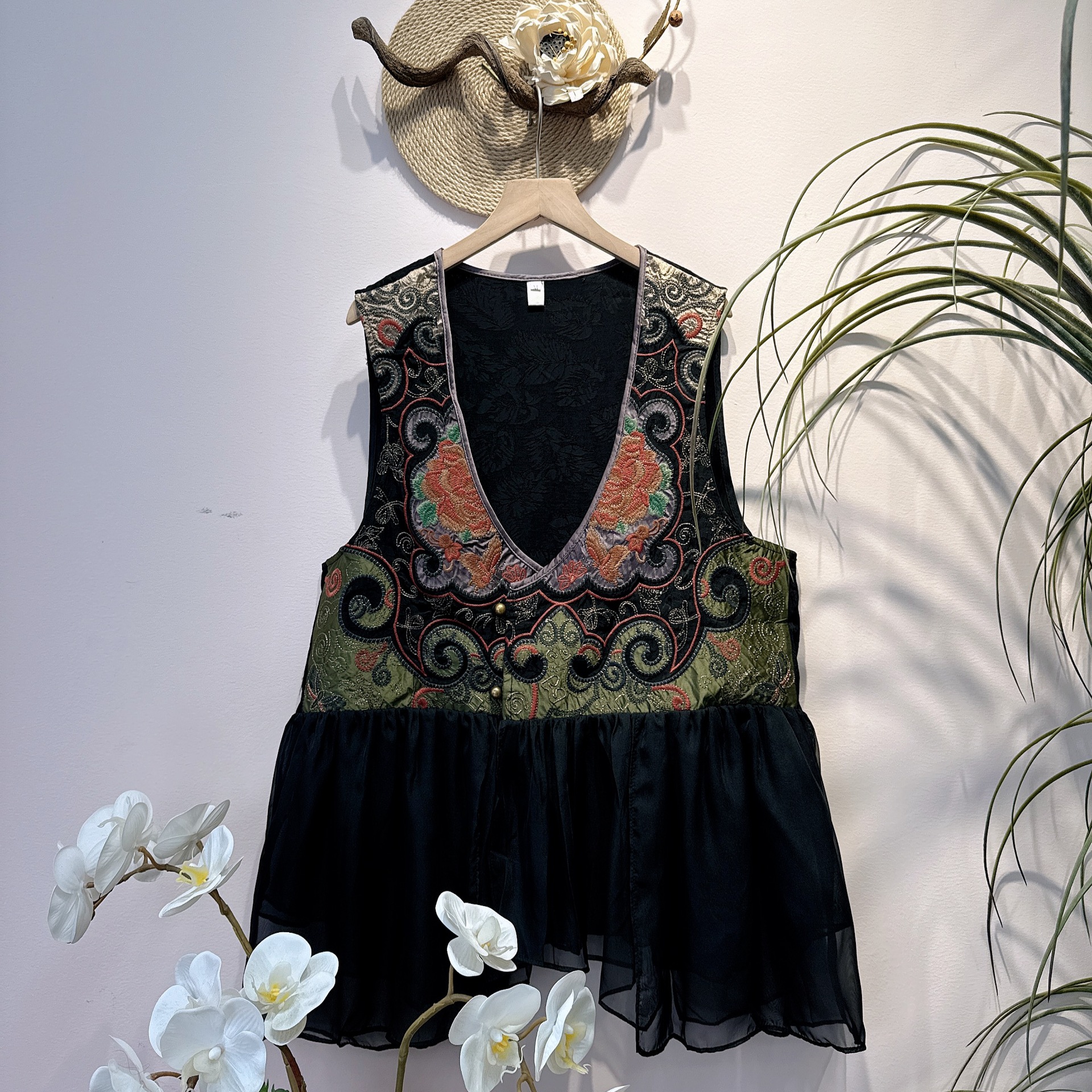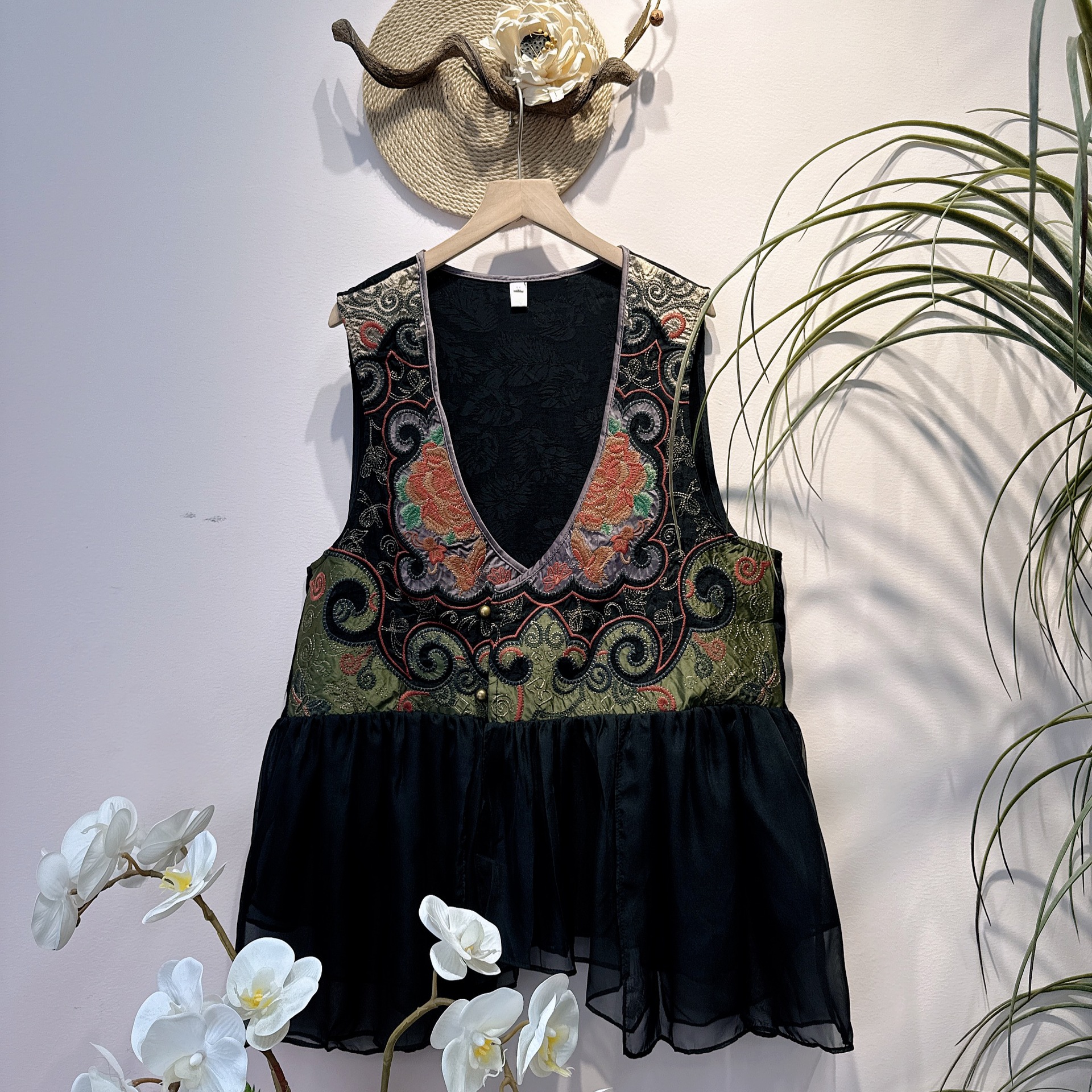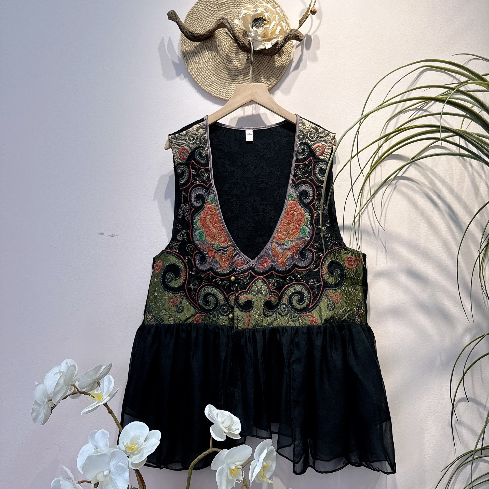 2025 새로운 봄, 여름 수 놓은 중공업 실크 v 넥 버튼 여성 카디건 조끼 조끼 짧은 스타일 다목적 여성