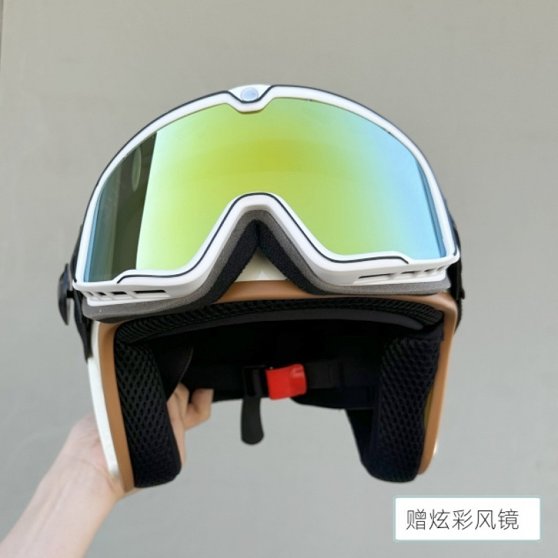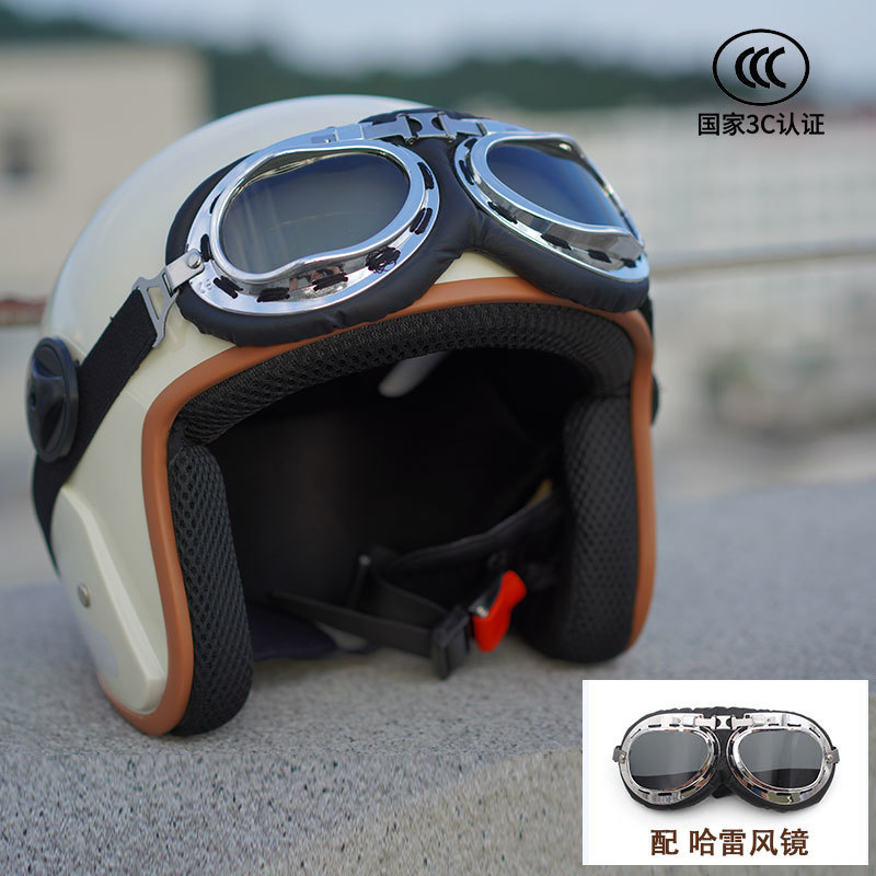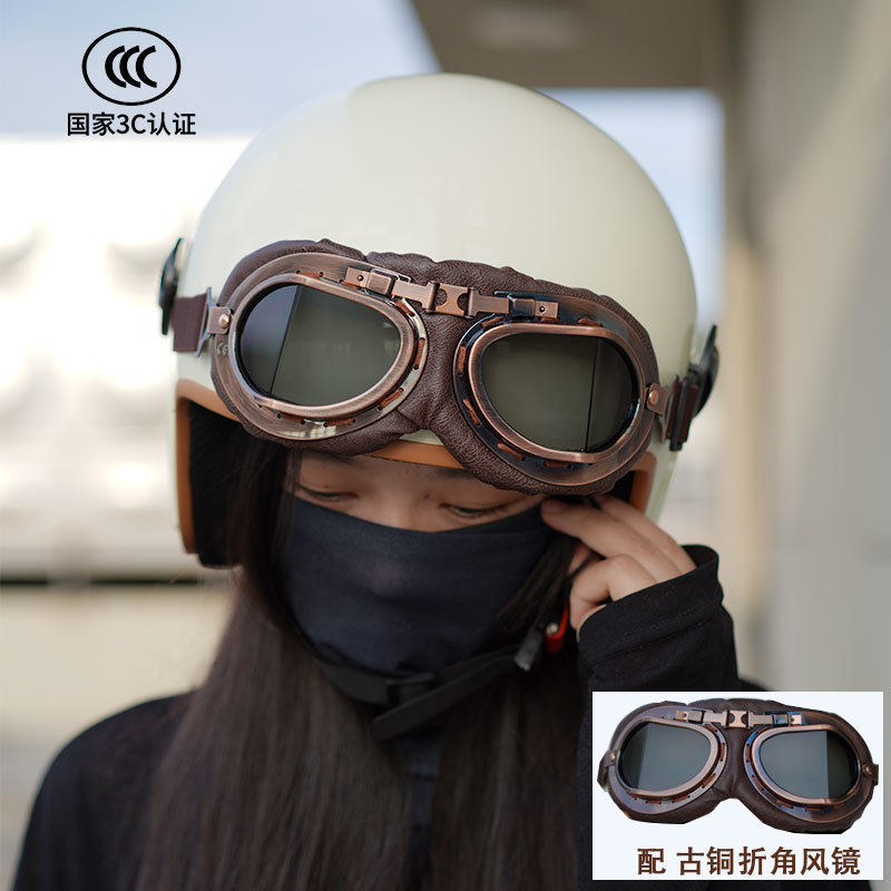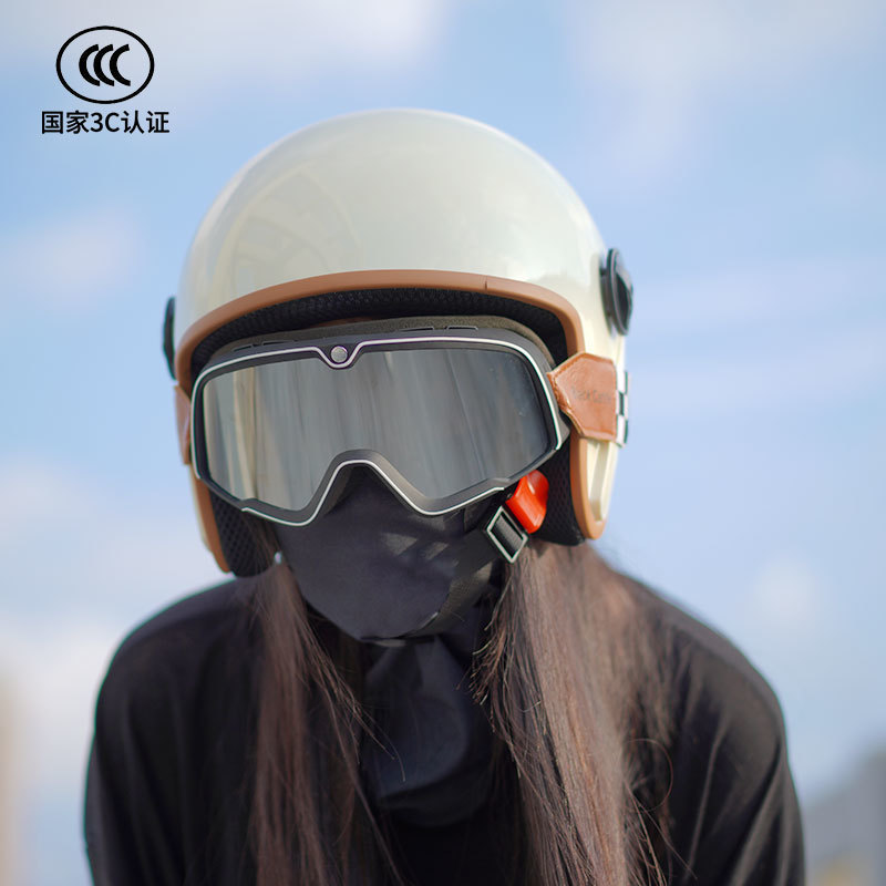 남성과 여성을 위한 복고풍 3C 인증 오토바이 전기 자동차 헬멧, 반 헬멧, 범용 오토바이 다채로운 고글 헬멧