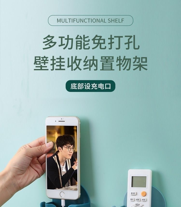 휴대 전화 홀더 침대 옆 선반 충전 벽걸이 형 벽 펀치 침실 보관 다기능 원격 제어 보관함
