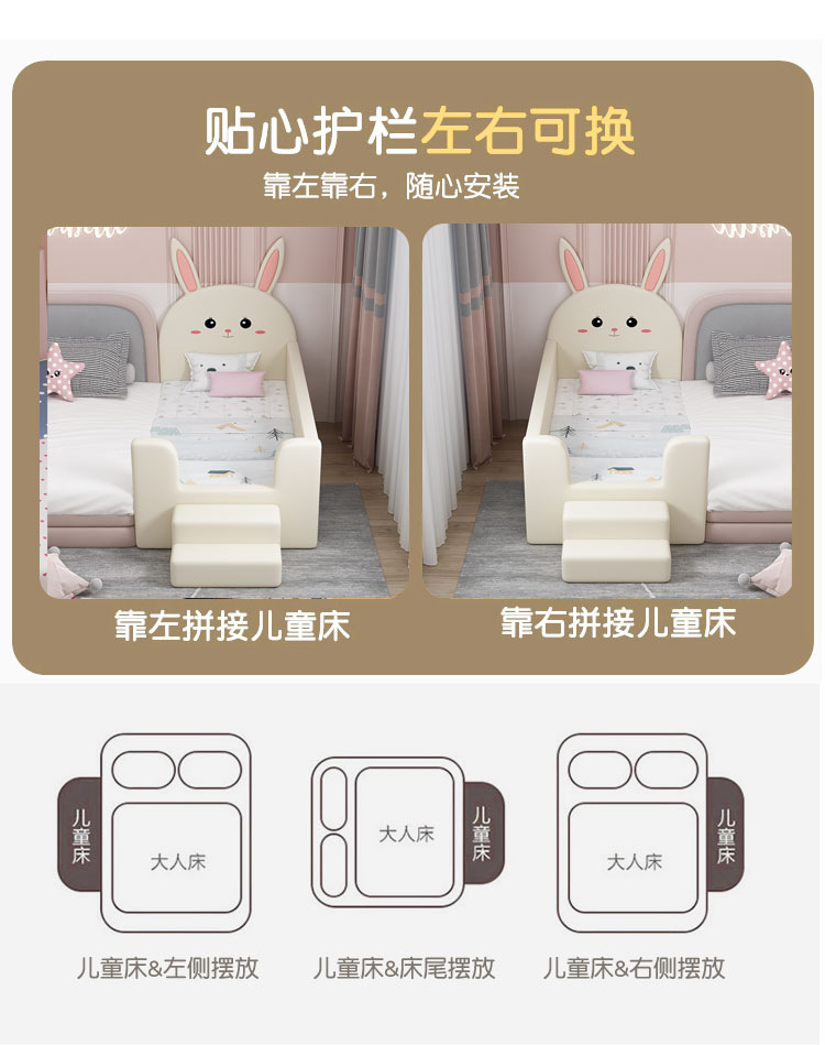 가드레일이 있는 어린이 접합 침대, 여자 아기 싱글 침대, 큰 어린이 침대 옆 침대, 확장된 작은 침대, 접합된 대형 침대 소프트 백