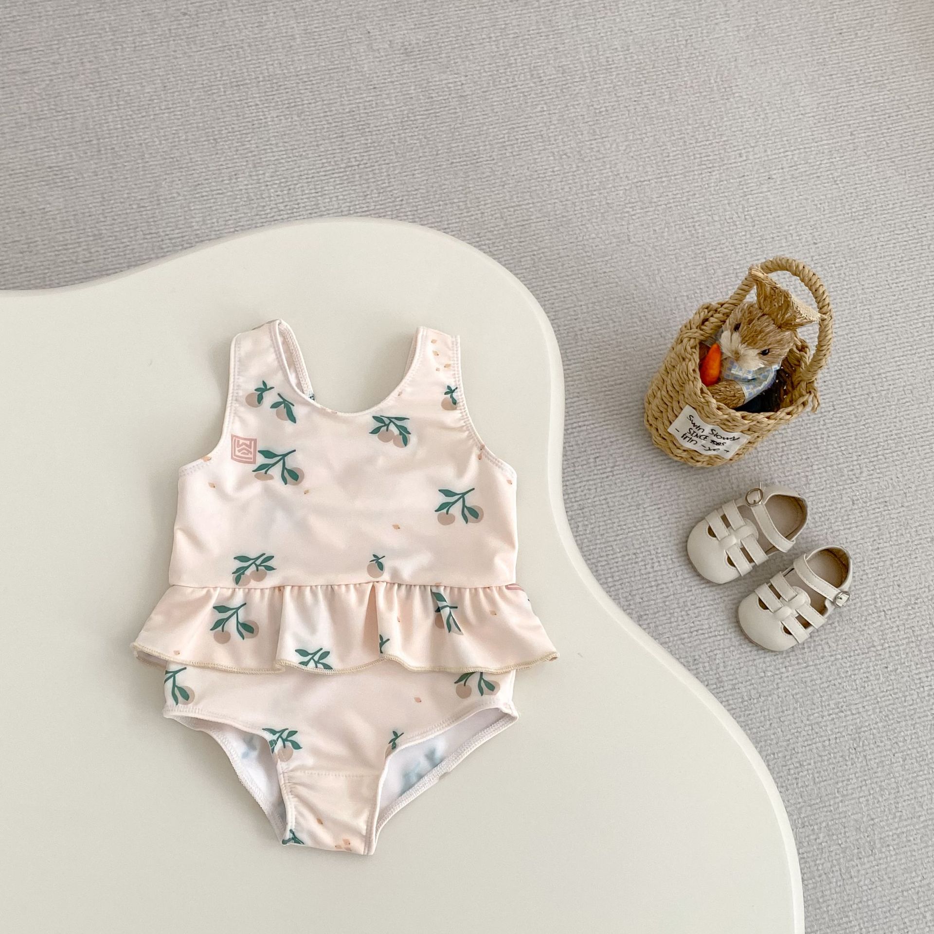 여자 수영복 귀여운 수영복 소녀 꽃 무늬 원피스 조끼 수영복 만화 온천 휴가 수영복