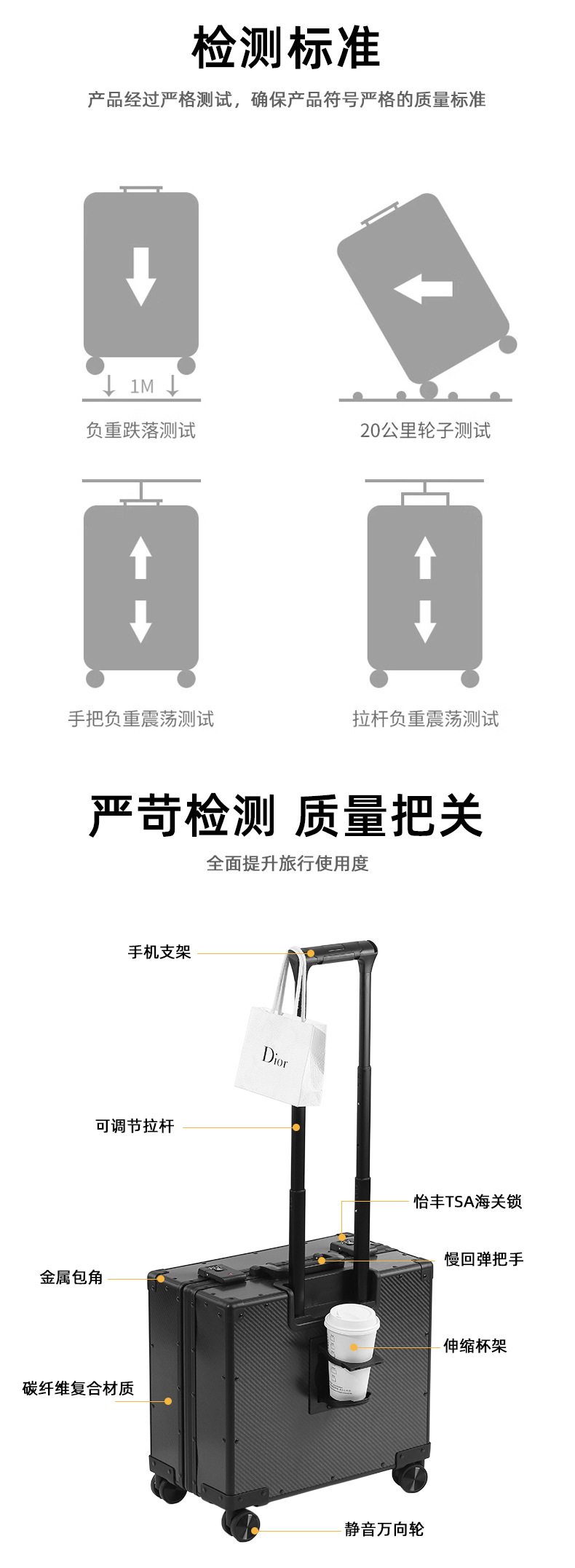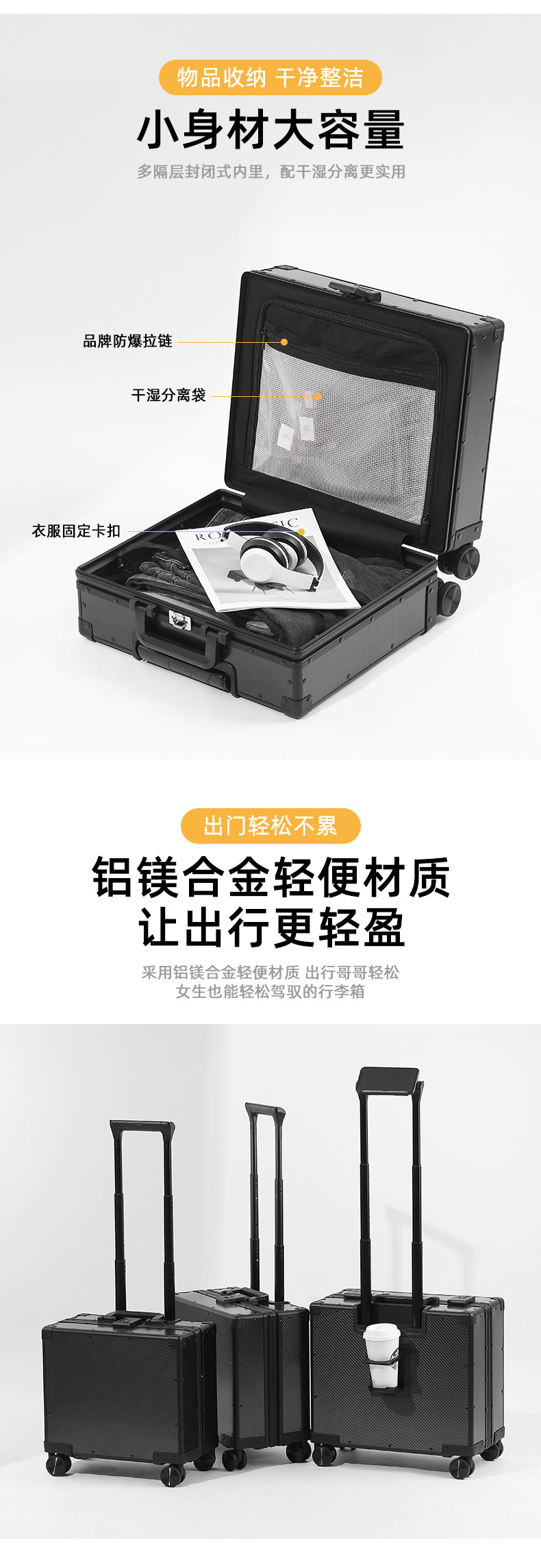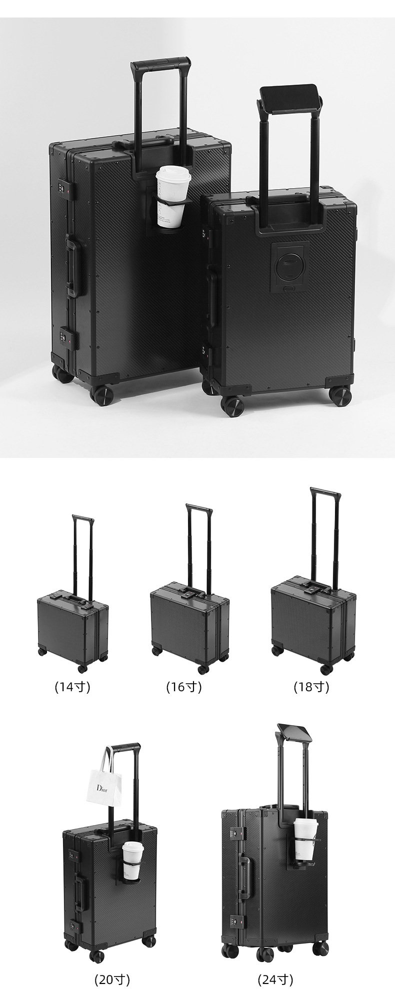 새로운 초경량 탄소 섬유 트롤리 케이스 비즈니스 남성용 20 인치 범용 휠 가방 암호 상자 도매 가방스토어 가기
