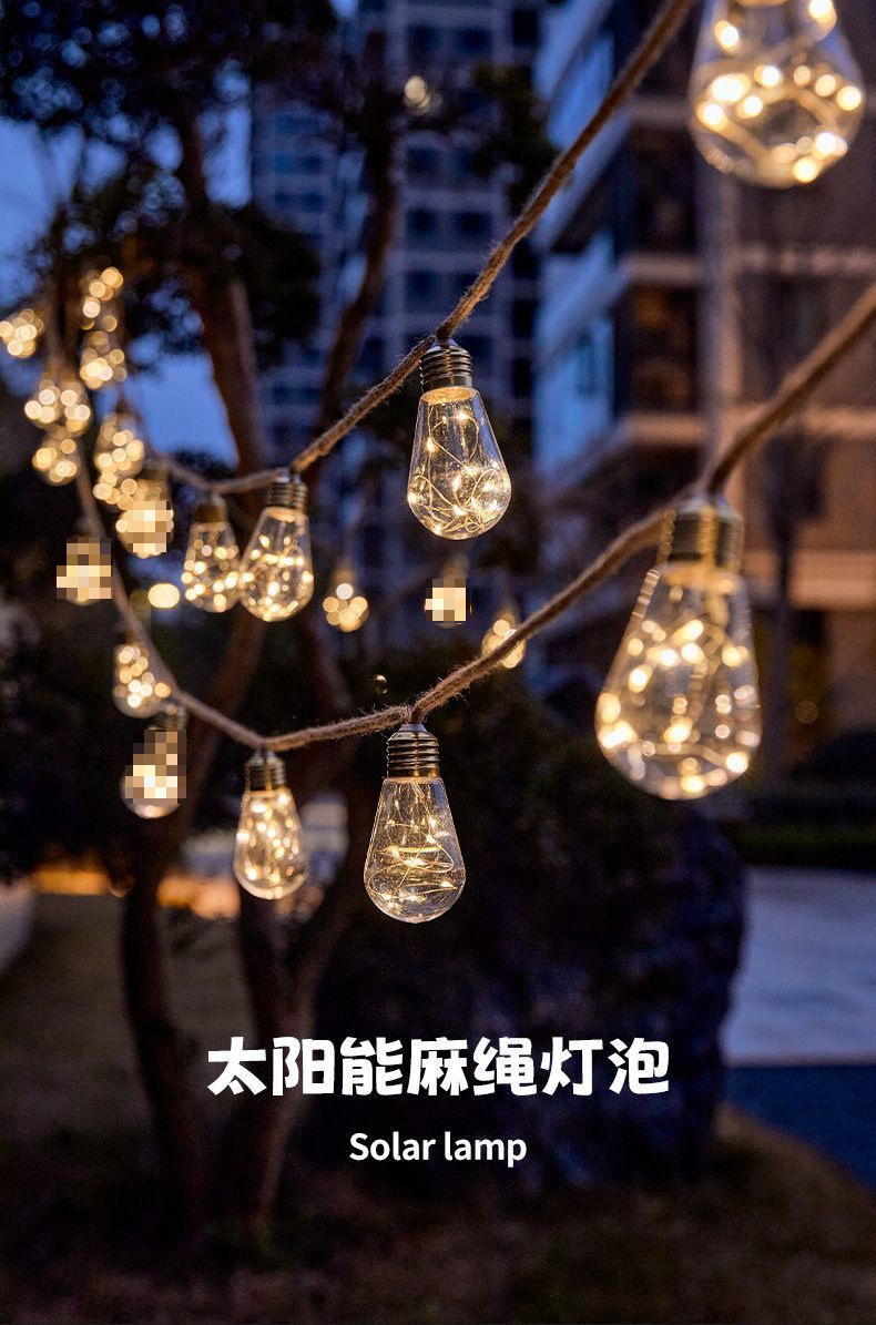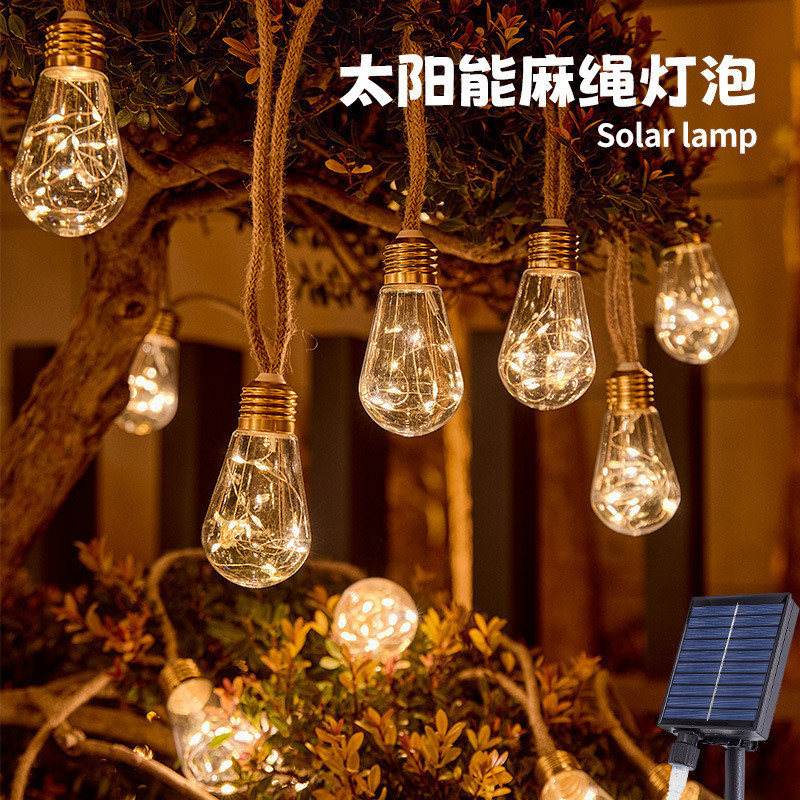G2C 태양 방수 대마 로프 빛 구형 구리 와이어 야외 캠핑 발코니 안뜰 방수 따뜻한 색상 깜박이는 빛