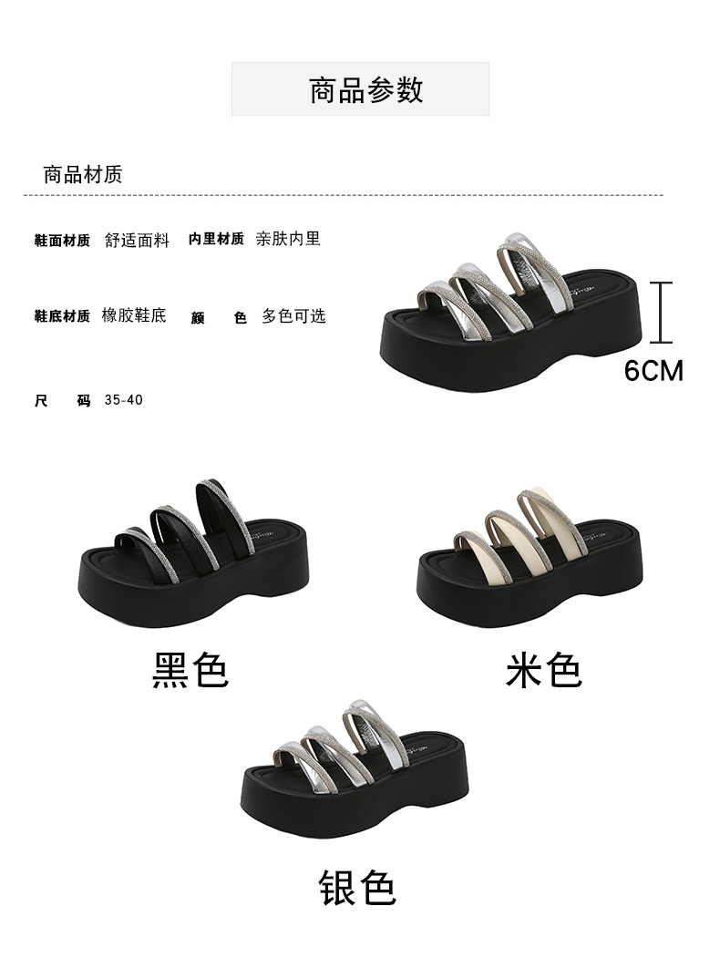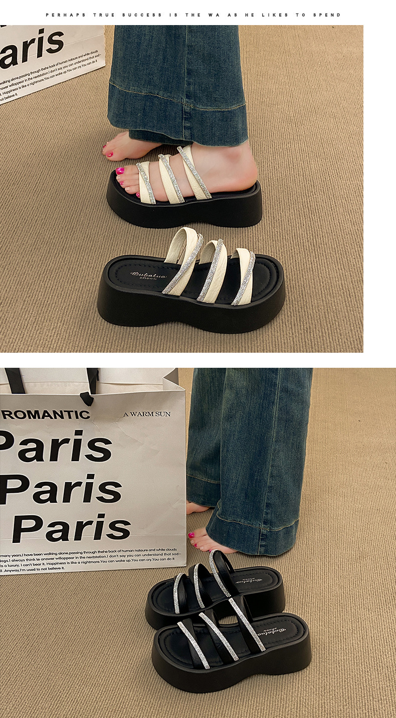 여성용 여름 아우터용 라인스톤 두꺼운 밑창 슬리퍼 2025 여름 신작 패션 오픈 토우 비치 비치 슬리퍼스토어 가기